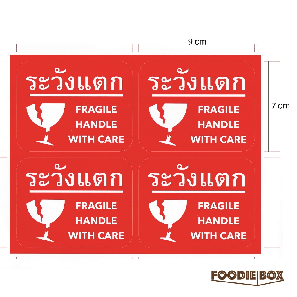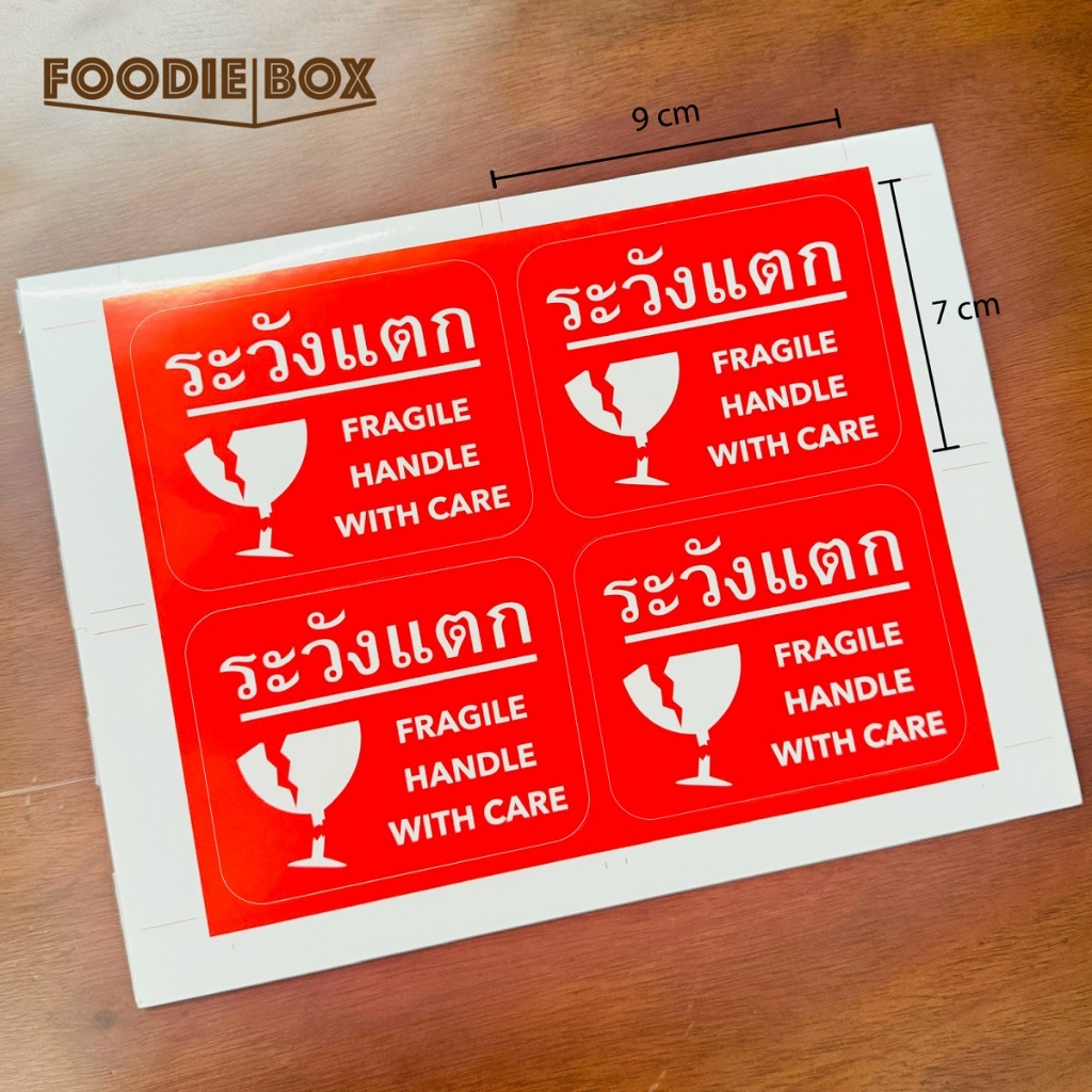 (พร้อมส่ง!) สติ๊กเกอร์ ระวังแตก FRAGILE **ดวงใหญ่ 9x7cm** สติ๊กเกอร์ติดกล่องพัสดุ