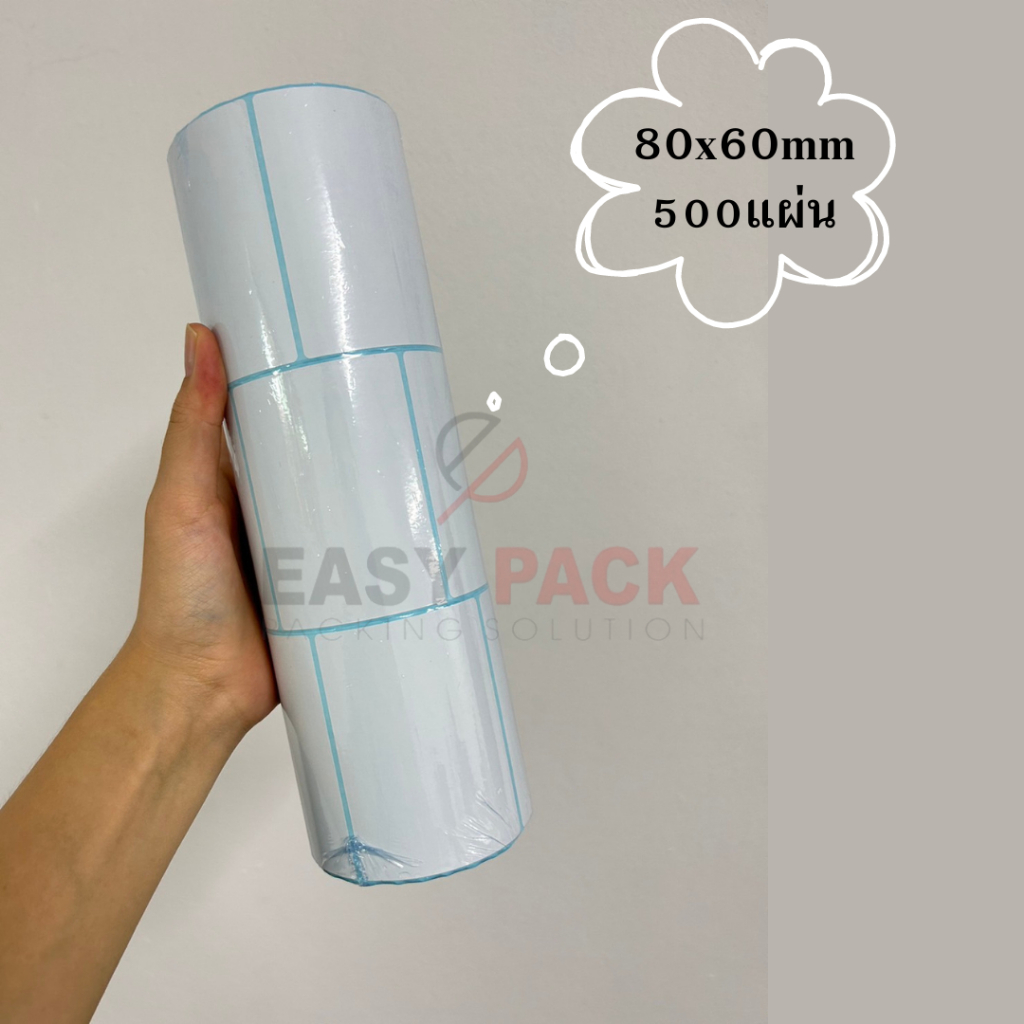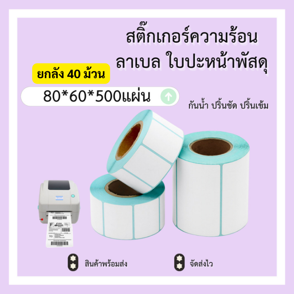 (ยกลัง 40 ม้วน ) 80x60x500แผ่น สติ๊กเกอร์ความร้อน บาร์โค้ด ลาเบล ใบปะหน้า Thermal paper Label Sticker