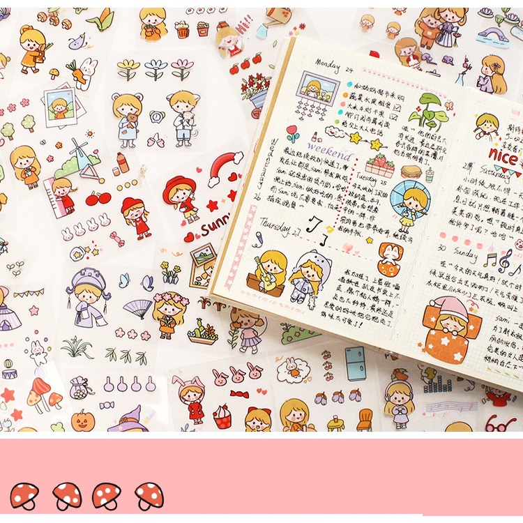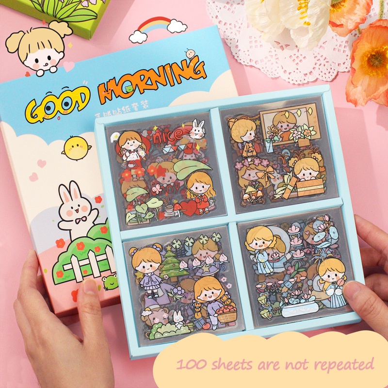 ❗ส่งของทุกวัน❗❤ กันน้ำ 100 แผ่นสําหรับตกแต่งไดอารี่ สติ๊กเกอร์ไดคัท ลายน่ารัก สติ๊กเกอร์ตกแต่ง