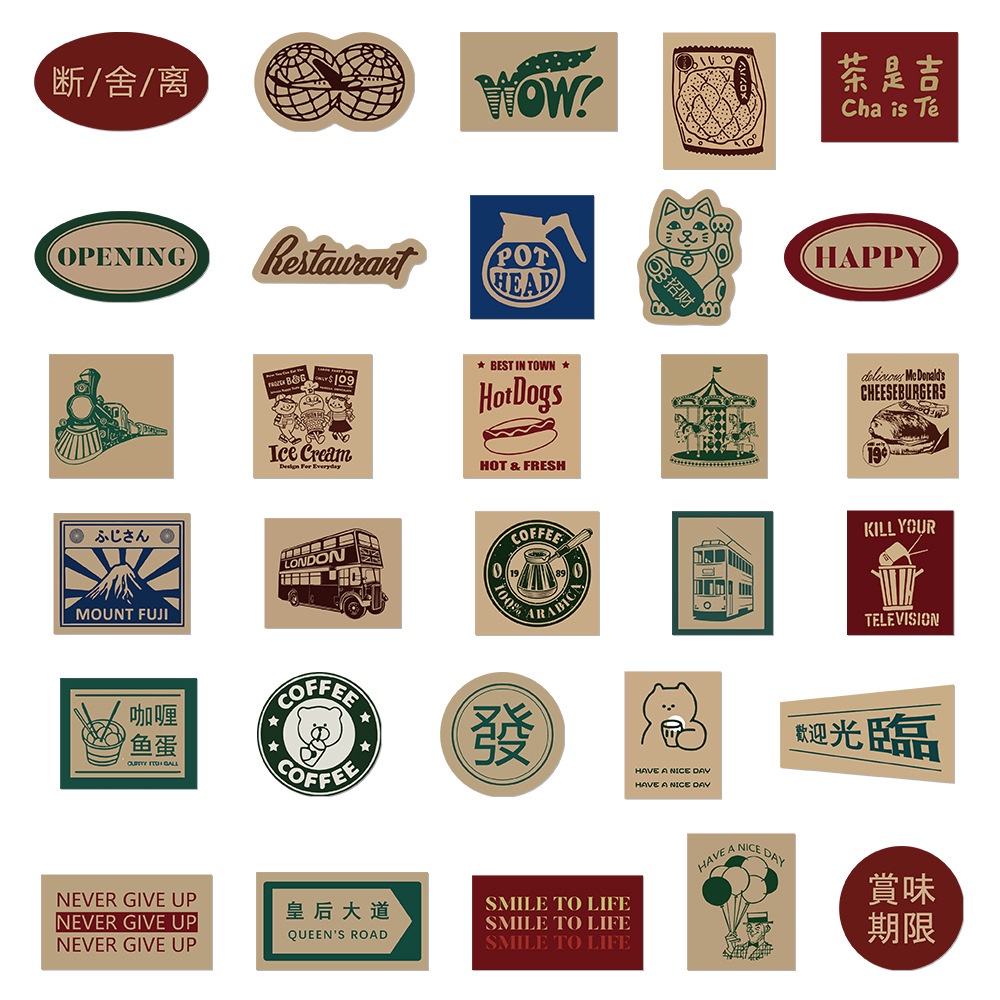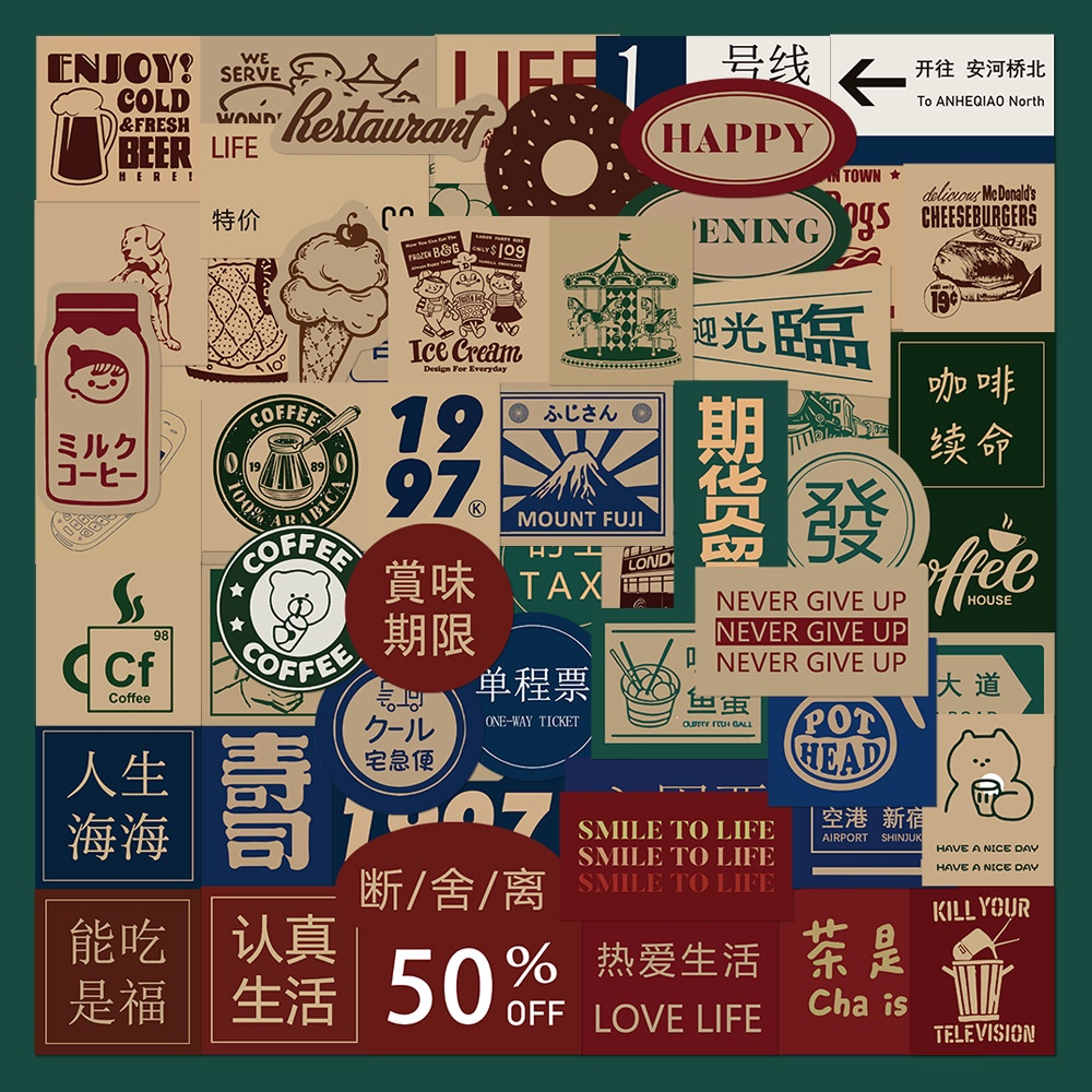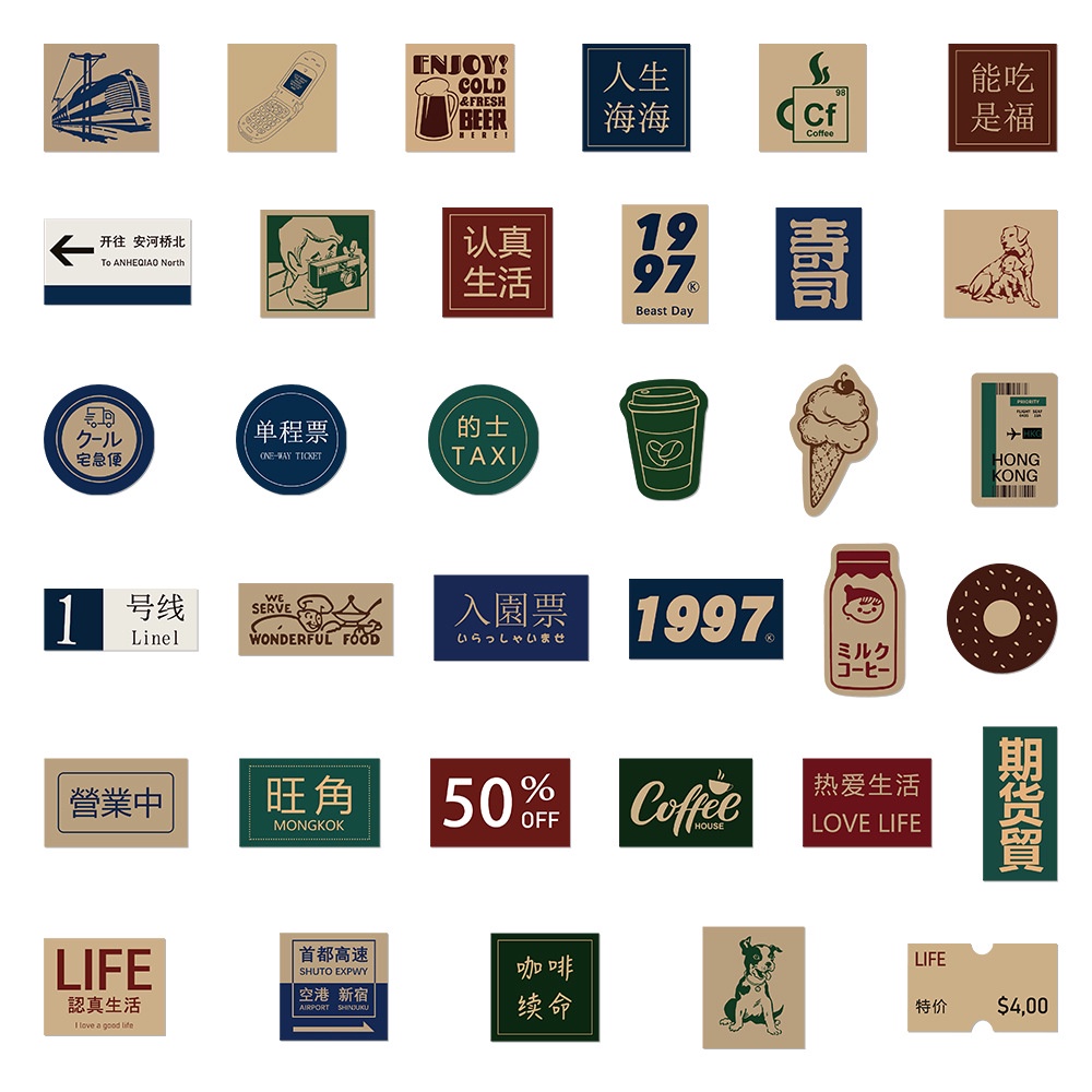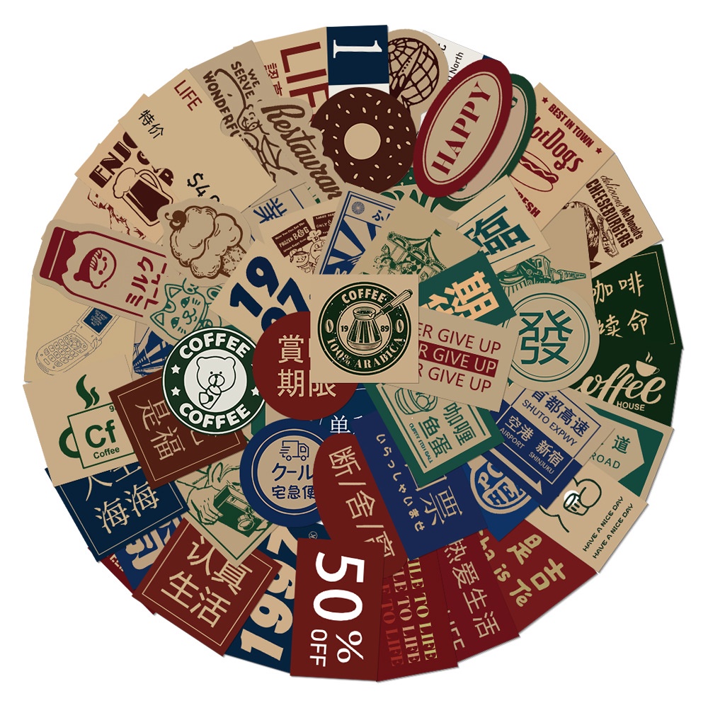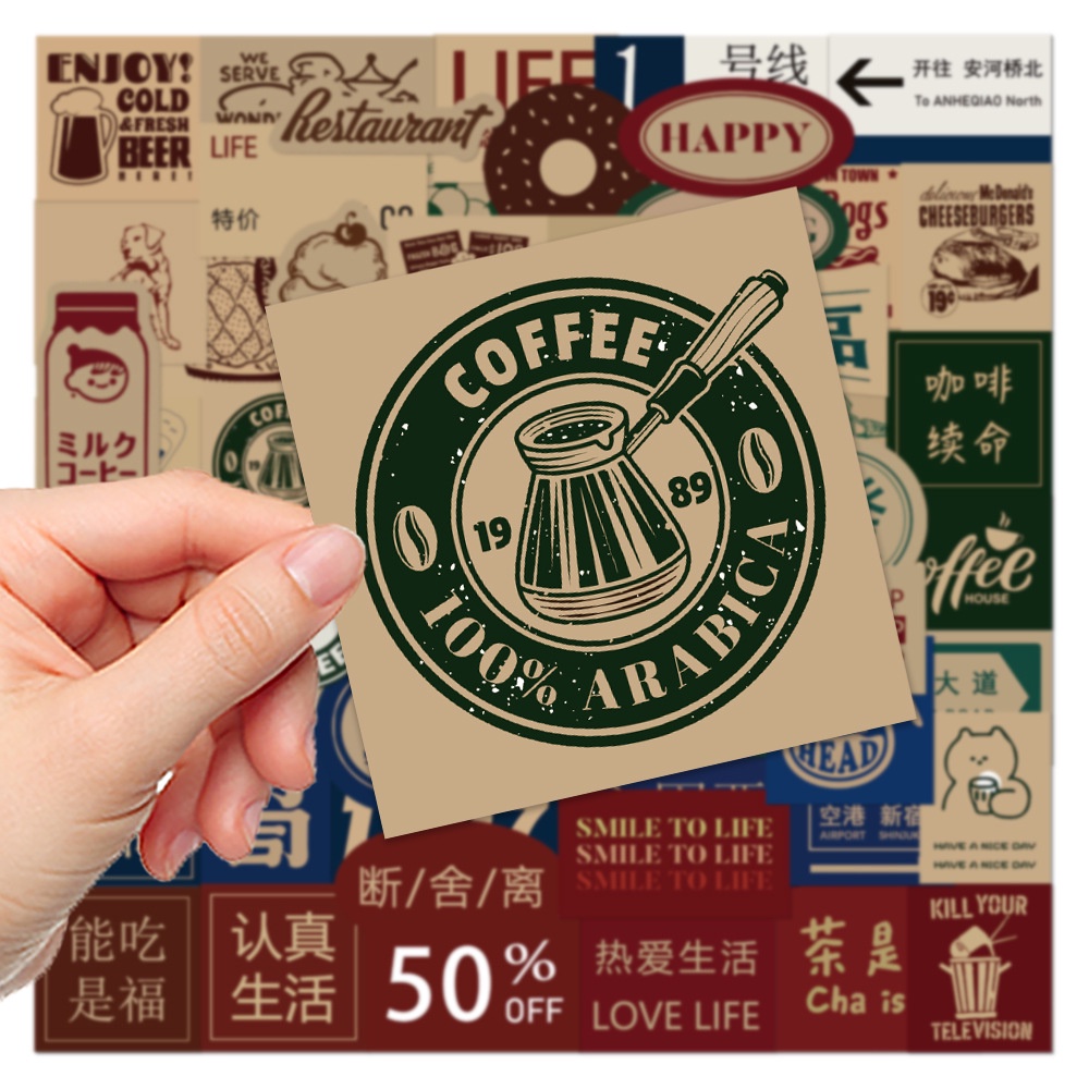 ❉ Retro Coffee Label Series 01 Stickers ❉ 64Pcs/Set Fashion DIY Waterproof Decals Doodle Stickers