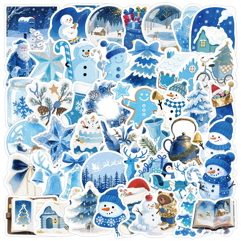 ❉ สติ๊กเกอร์ Blue Merry Christmas Series 03 ❉ 50 ชิ้น/เซ็ต DIY แฟชั่นสติ๊กเกอร์ Doodle กันน้ํา