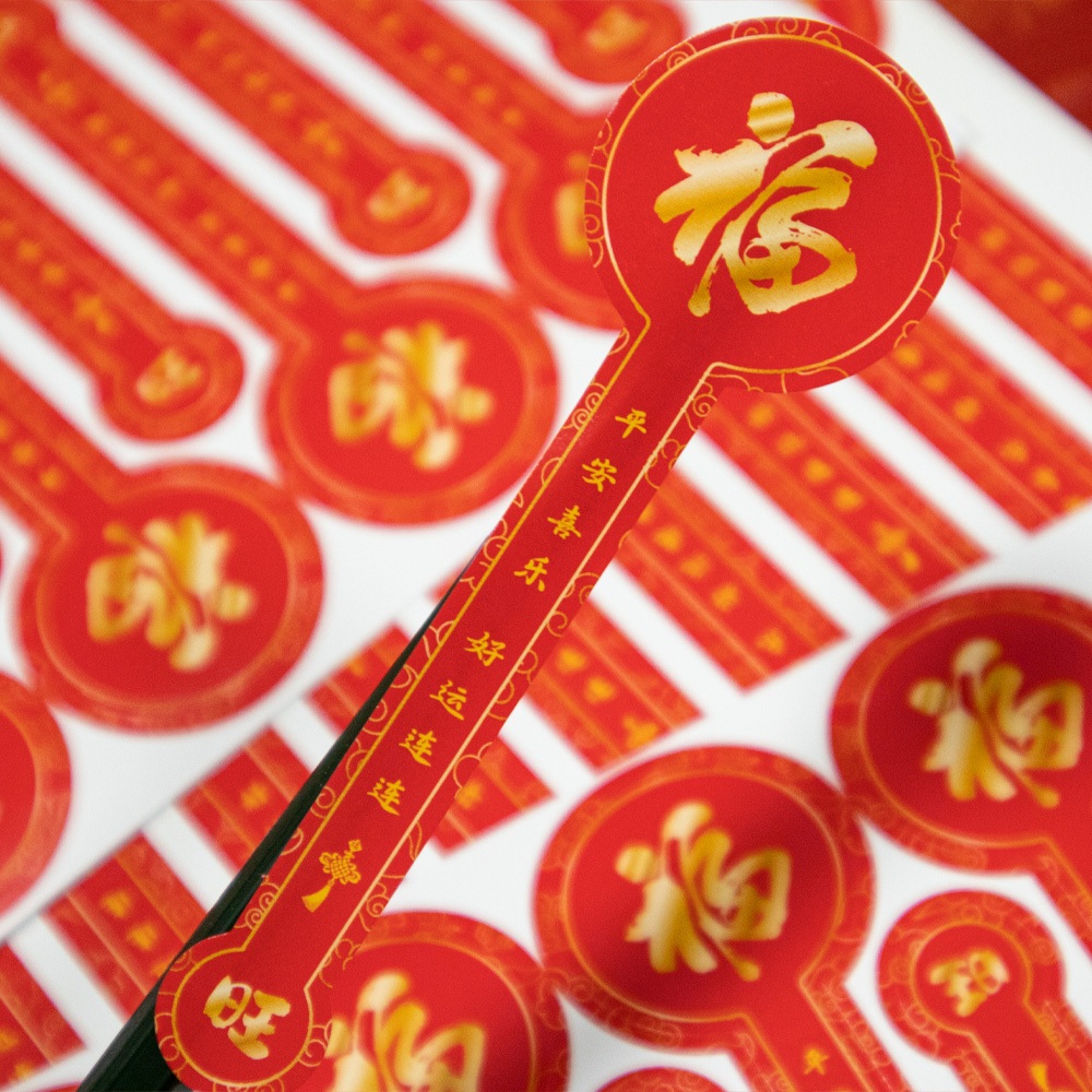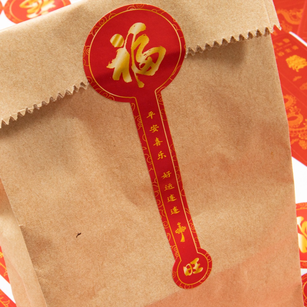 100 ชิ้น / แพ็ก สีแดง สติกเกอร์ตกแต่ง ของขวัญตรุษจีน สติกเกอร์ตกแต่งเทศกาลฤดูใบไม้ผลิ เบเกอรี่ บรรจุภัณฑ์ ปิดผนึกฉลาก