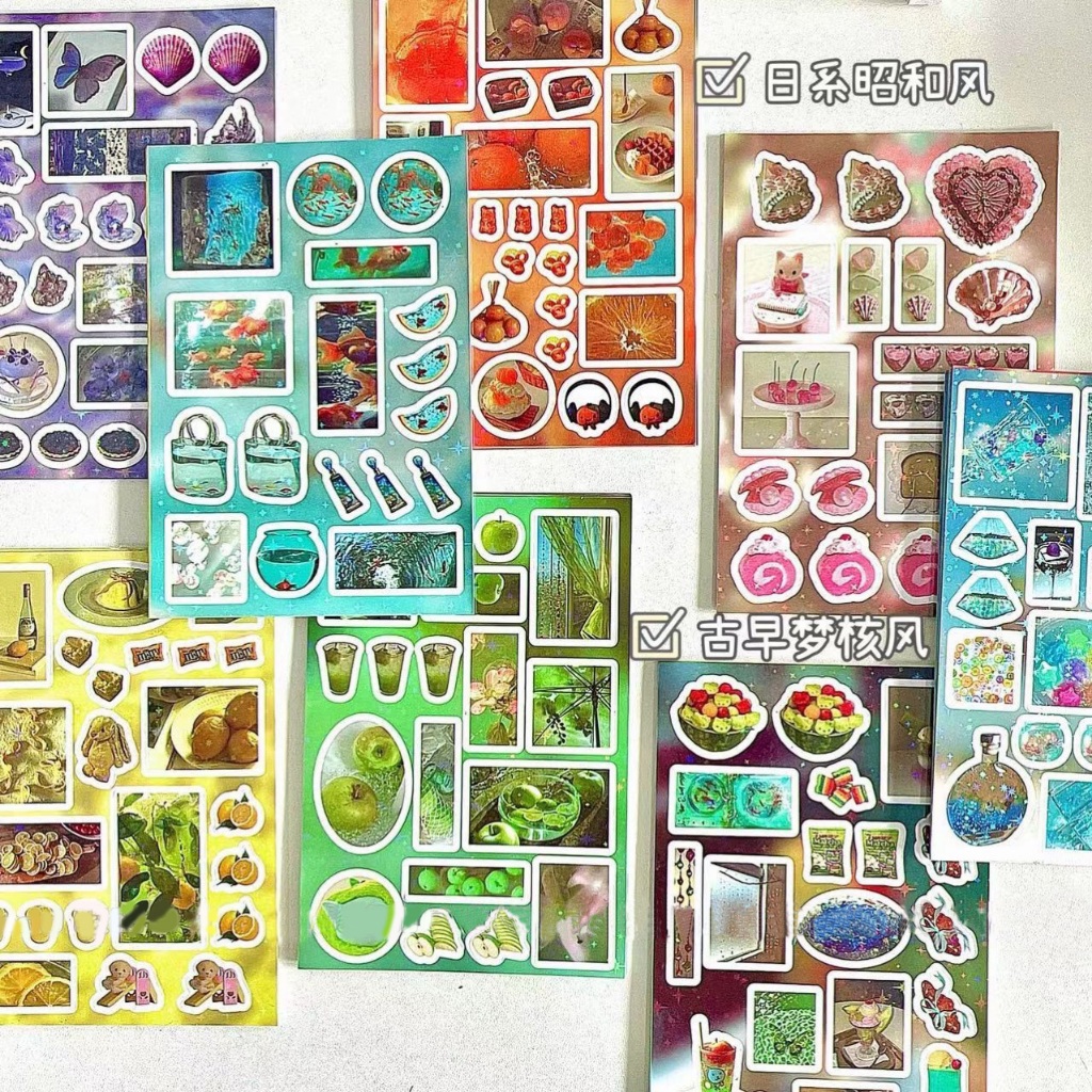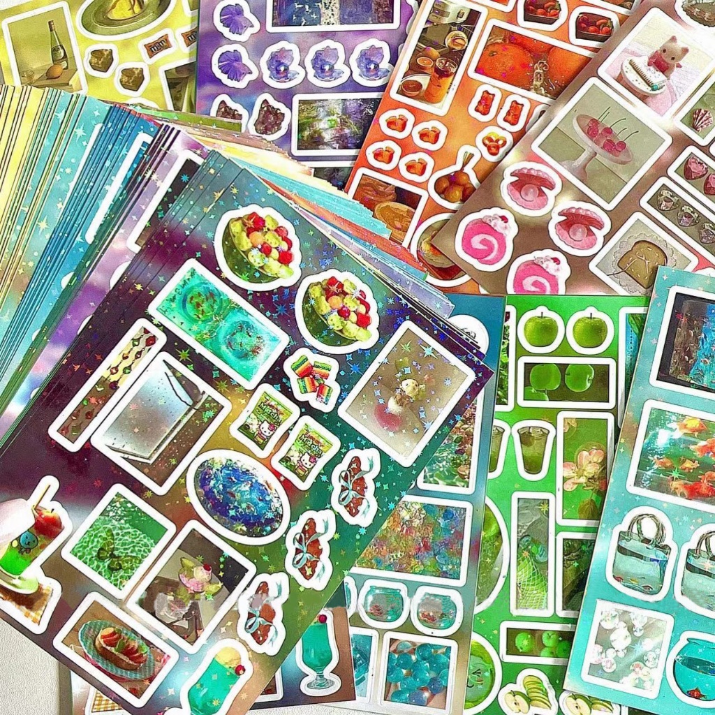 10 ชิ้น Y2K PET โปร่งใสแฟลชฟิล์มสติกเกอร์ Scrapbooking ตกแต่งสติกเกอร์ DIY โทรศัพท์ Collage วัสดุ