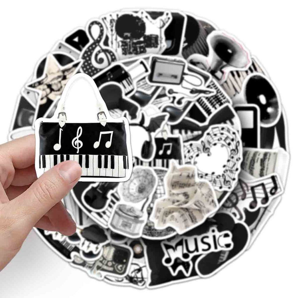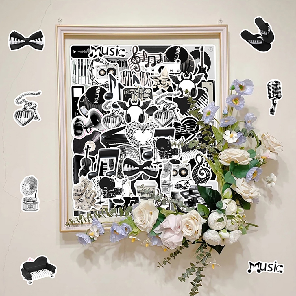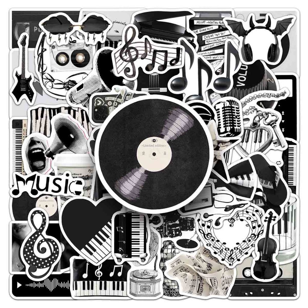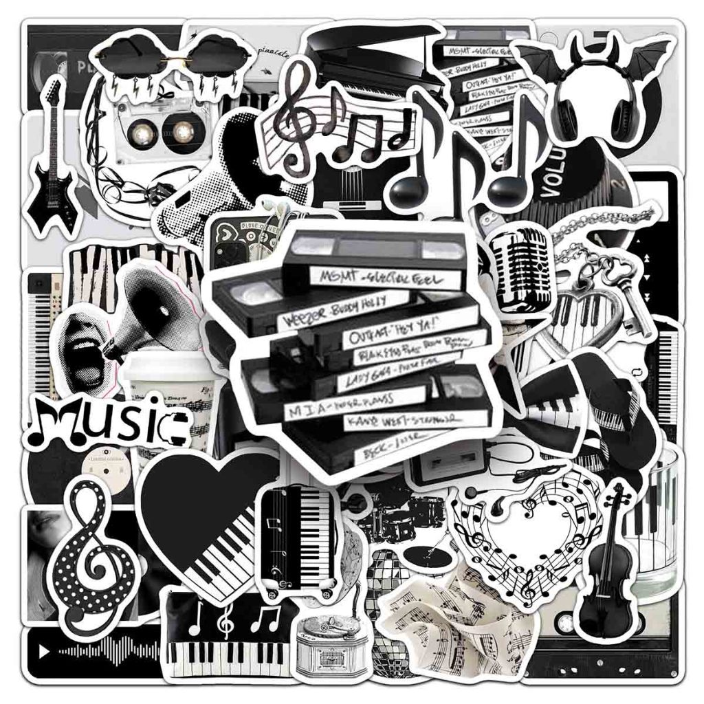 10/50 ย้อนยุคสีดําและสีขาวเพลง อิน สติกเกอร์บัญชีมือ ทําเอง สติกเกอร์ตกแต่ง