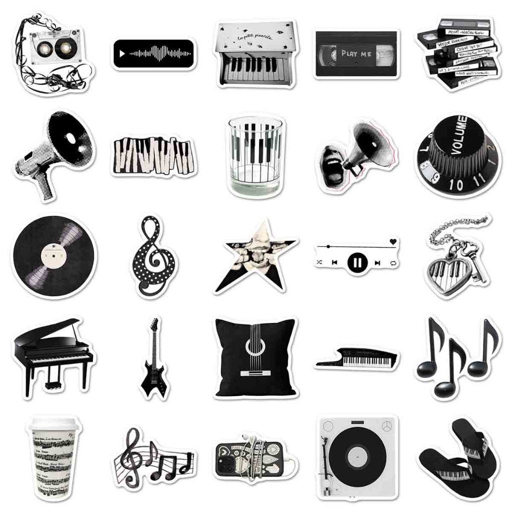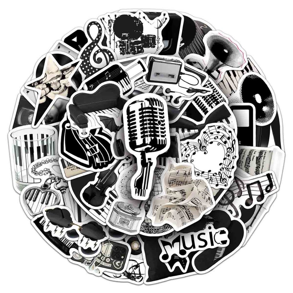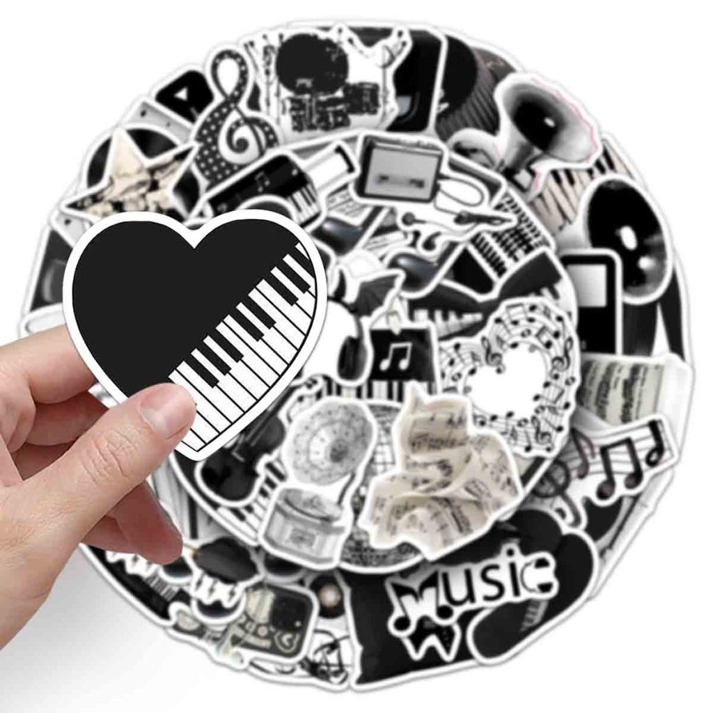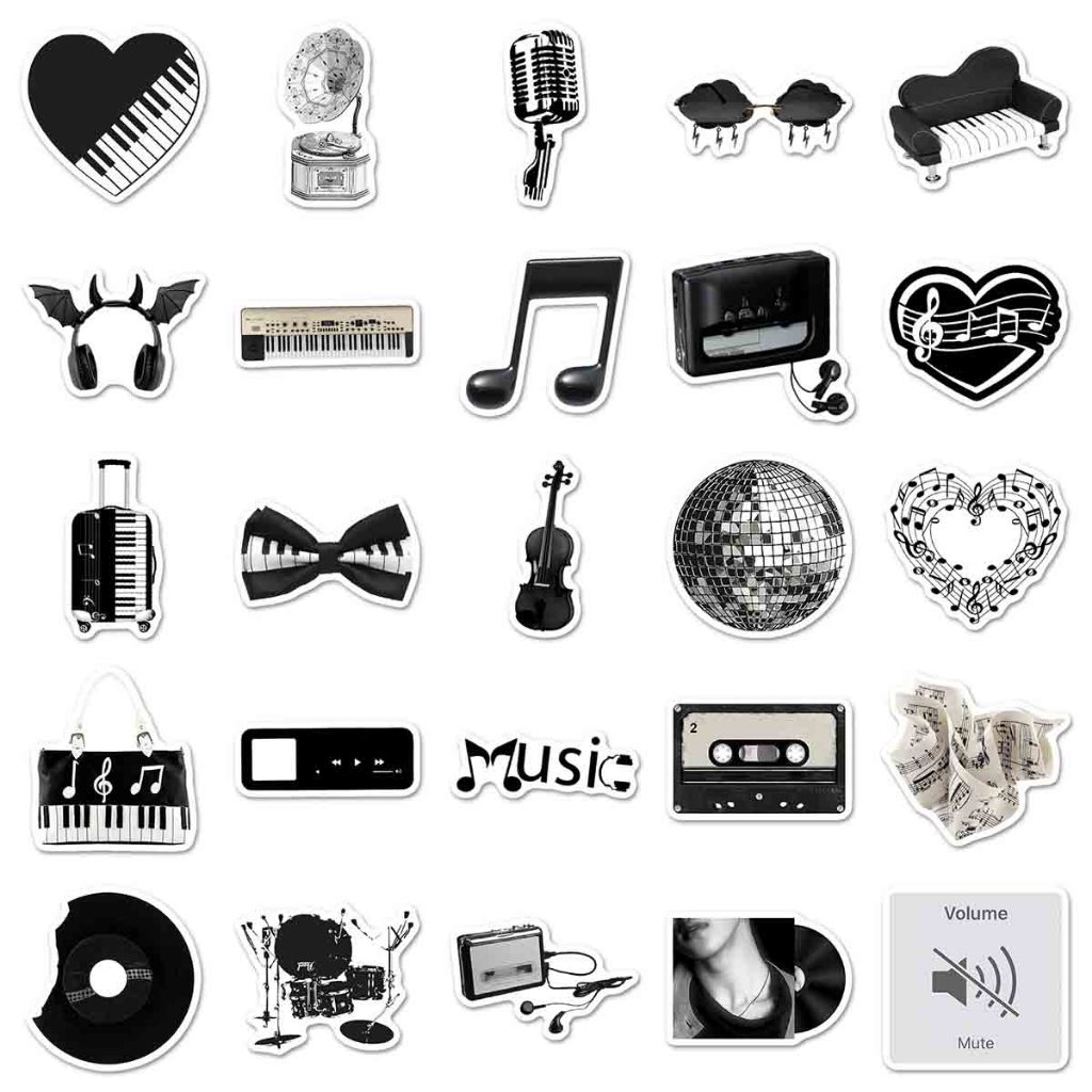 10/50 ย้อนยุคสีดําและสีขาวเพลง อิน สติกเกอร์บัญชีมือ ทําเอง สติกเกอร์ตกแต่ง