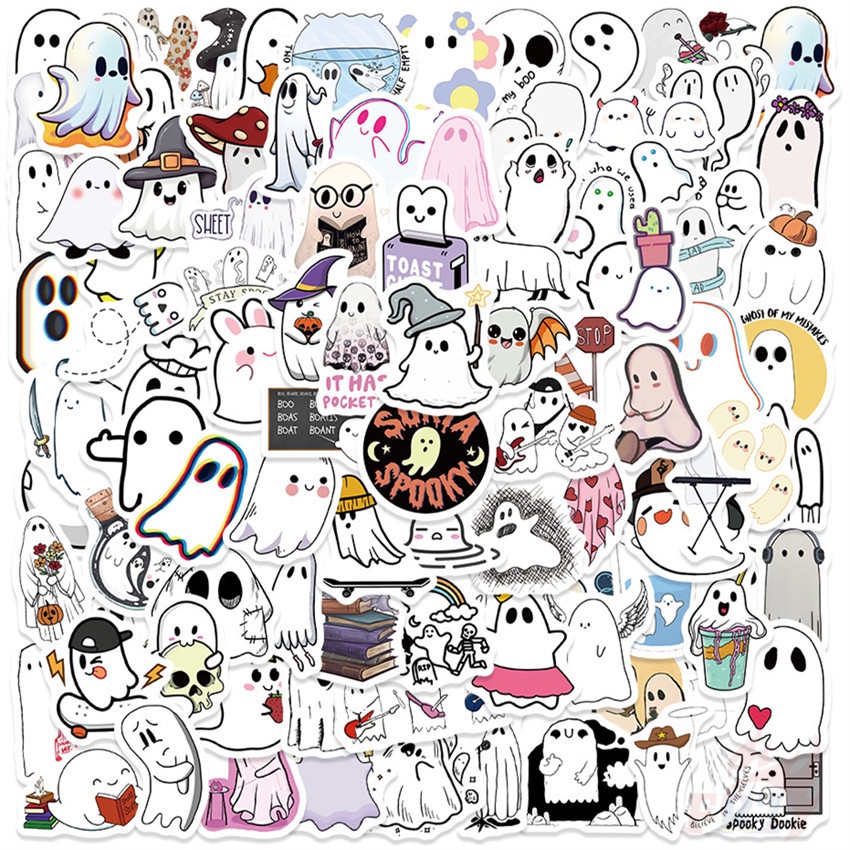 100 ชิ้น / ชุด ❉ Q สติกเกอร์ ลาย Ghost Series 01 สีขาว ❉ สติกเกอร์แฟชั่น กันน้ํา DIY Doodle