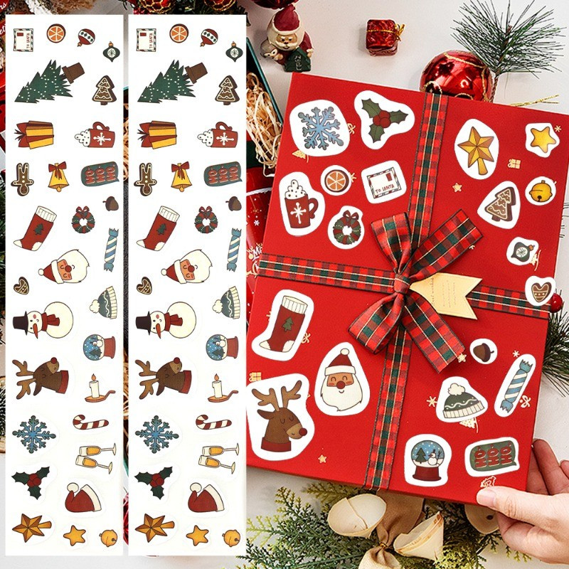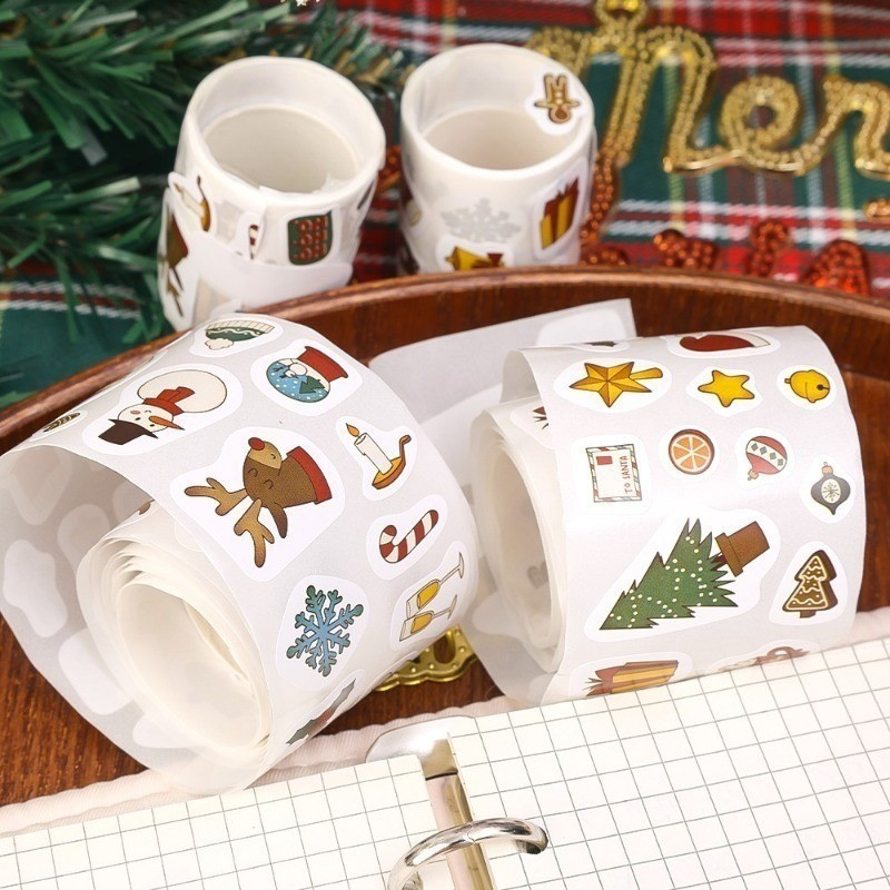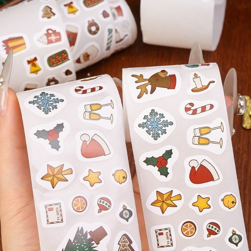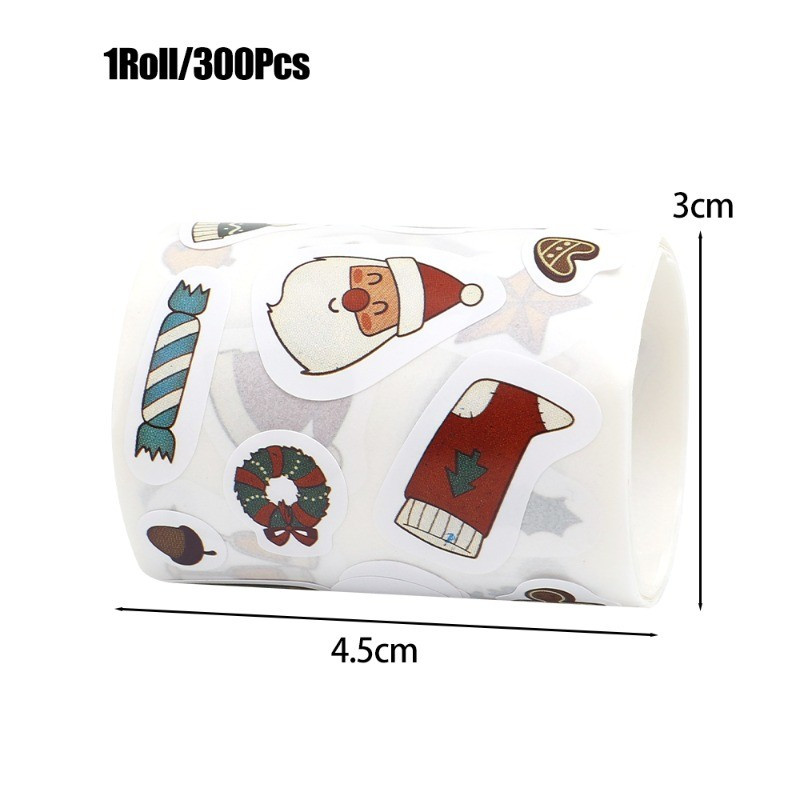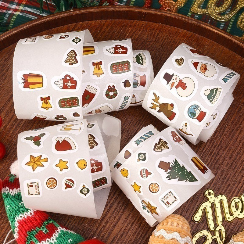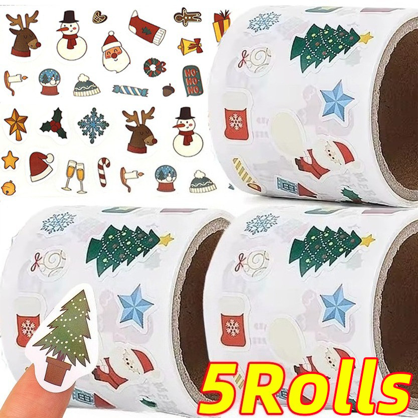1/3/5 ม้วนป้ายบรรจุภัณฑ์การ์ตูนซานตาคลอส / สติกเกอร์ธีมคริสต์มาส ทําเอง สําหรับปิดผนึกของขวัญ