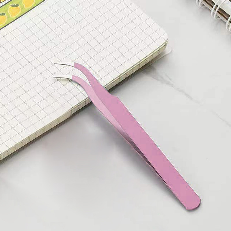 1ชิ้นสีชมพูสแตนเลสแหนบขนตาโค้งข้อศอกมัลติฟังก์ชั่เครื่องมือความงาม