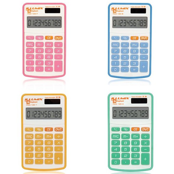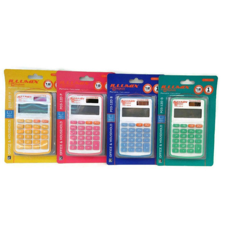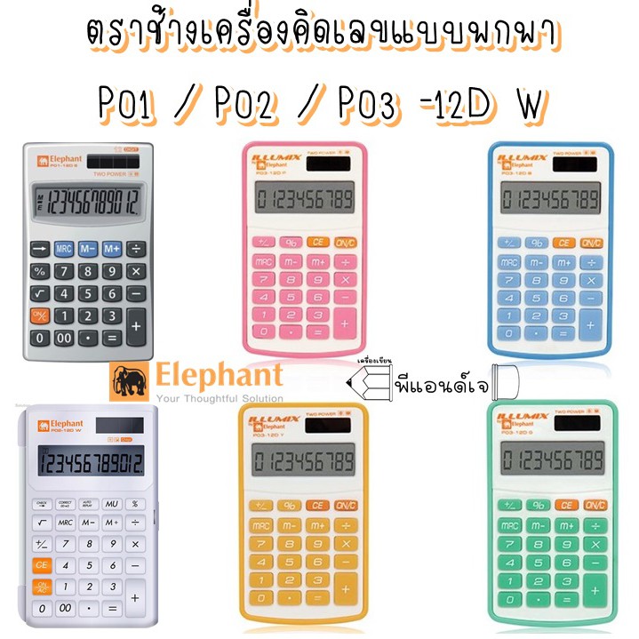 Elephant ตราช้าง เครื่องคิดเลข แบบพกพา P01 / P02 / P03 -12D W – ขาว / เงิน / คละสี