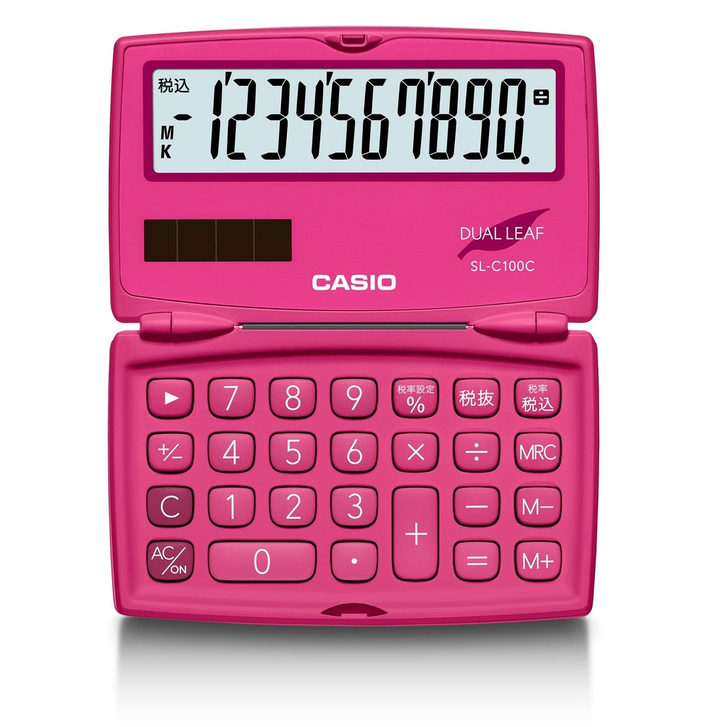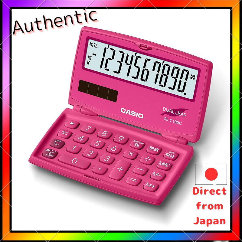 Casio เครื่องคิดเลขสีสันสดใส – โน้ตบุ๊กแบบพับได้ 10 หลักสีชมพูสดใสประเภท Sl-C100C-Rd-N
