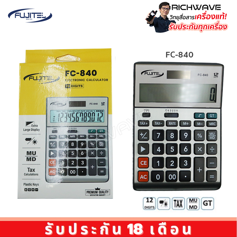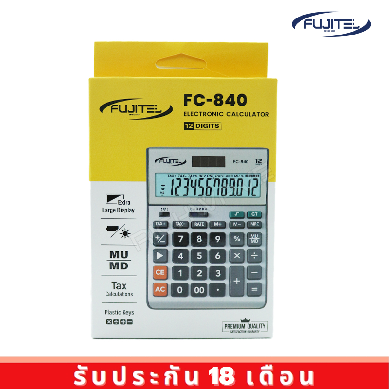 Fujitel รุ่น FC-840 เครื่องคิดเลข 12 หลัก ตัวเลขชัดเจน หน้าขนาดใหญ่ สีขาวเงิน ของแท้ ออกใบกำกับภาษีได้ ประกัน 18 เดือน