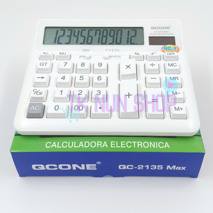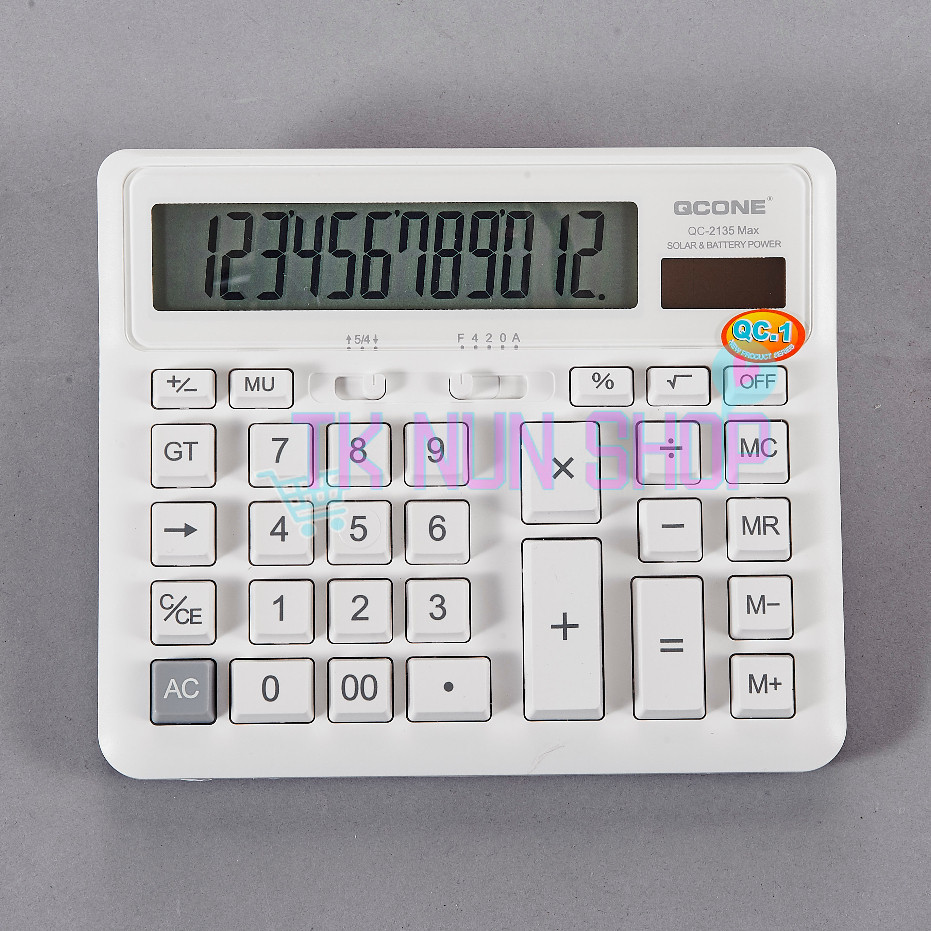 เครื่องคิดเลขสีขาว12หลัก QCONE ของแท้100% เครื่องคิดเลขธุรกิจ จอแสดงผลใหญ่ ปุ่มกดพลาสติกใหญ่ รุ่น QC-2135 MAX