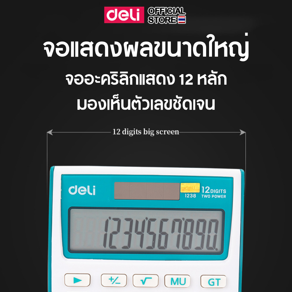เครื่องคิดเลขแบบตั้งโต๊ะ Deli เครื่องคิดเลข อุปกรณ์สำนักงาน สำนักงาน แสดงตัวเลข 12 หลัก รับประกัน 3 ปี! ราคาถูก พร้อมส่ง