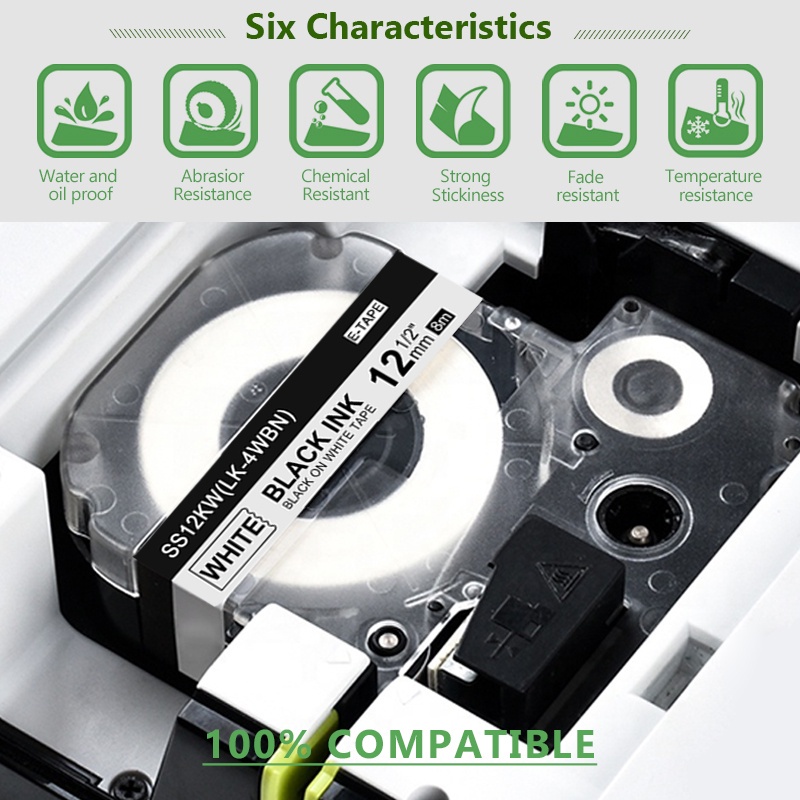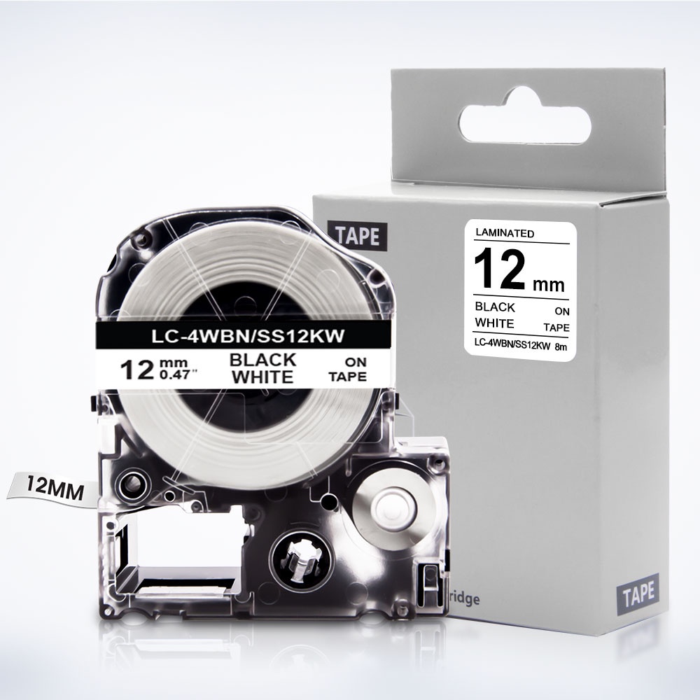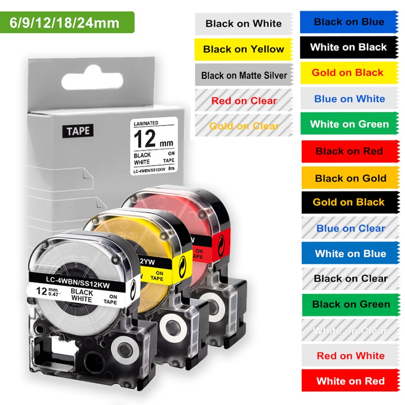 เทปฉลาก EPSON SS12KW LC-4WBN9 6 9 12 18 24 มม. สําหรับเครื่องทําฉลาก EPSON LabelWorks LW-300 LW-400 LW-500 LW-600P LW-700 LW-900P LW-1000P KingJim TepraPro SR330V SR530