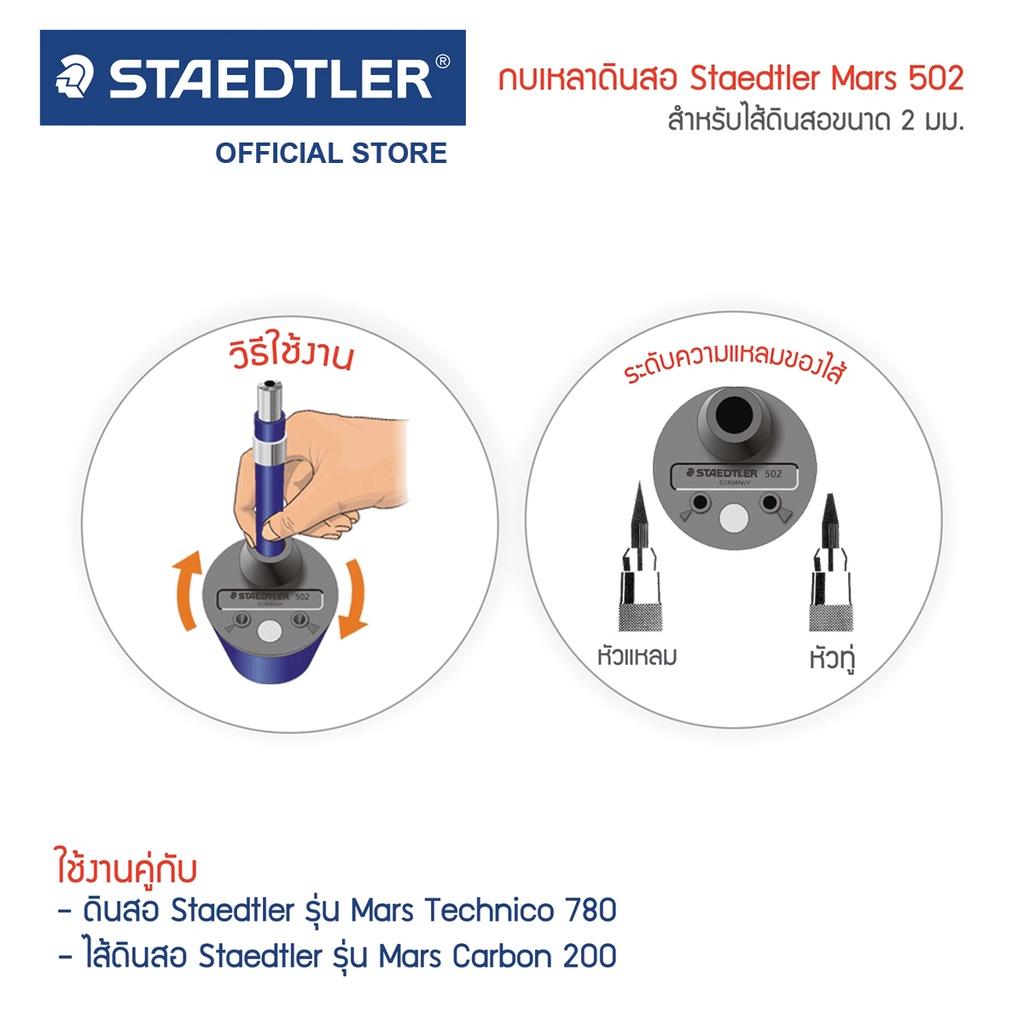 กบเหลาดินสอ Staedtler รุ่น 502 (สำหรับไส้ขนาด 2 มม.)