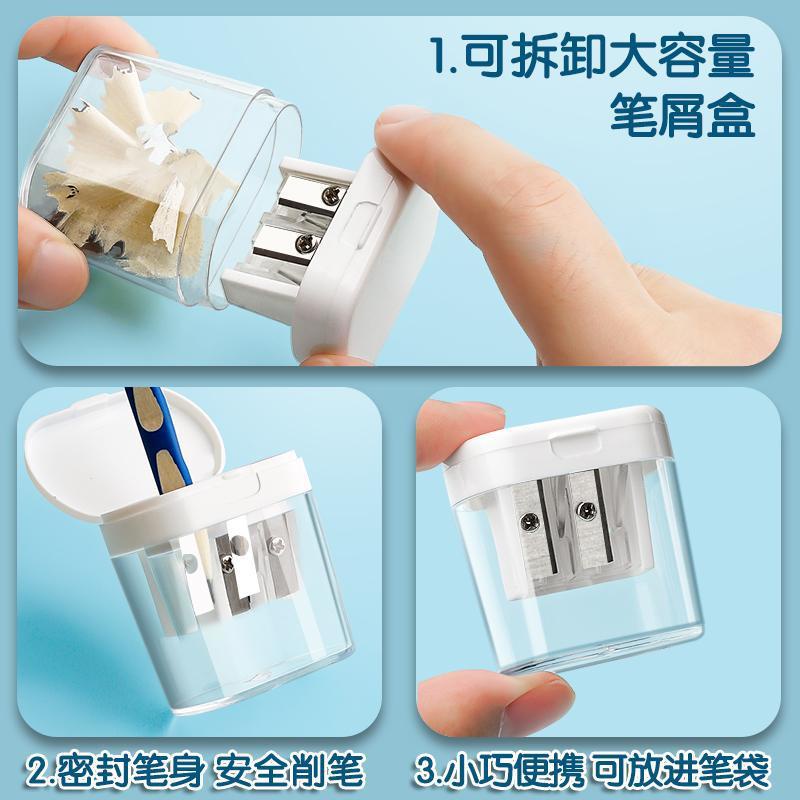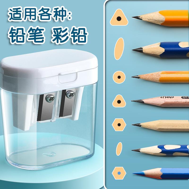 กบเหลาดินสอ พลาสติกใส สองรู เรียบง่าย สามารถเหลาได้ สามเหลี่ยม ขนาดใหญ่ พร้อมฝาปิด ขนาดเล็ก เครื่องเขียนนักเรียน กบเหลาดินสอด้วยตนเอง WJ199