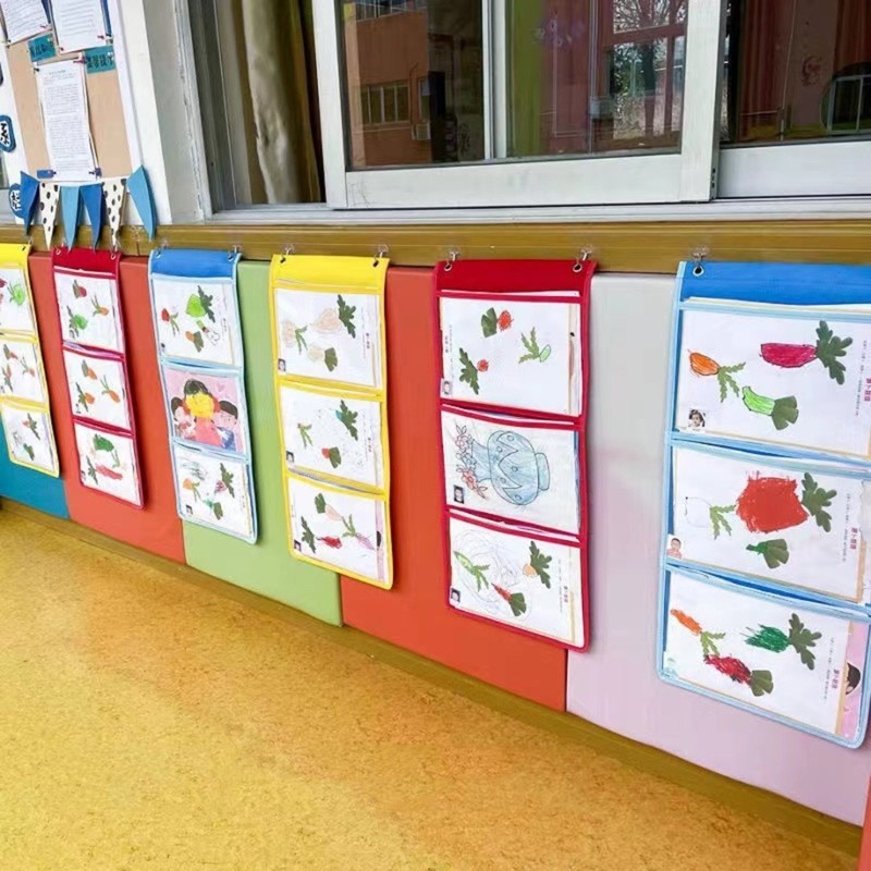 Sun มัลติฟังก์ชั่น Haning แฟ้มติดผนัง Organizer แผนภูมิกระเป๋าแขวนผนังกระเป๋าเก็บห้องเรียน Organizer สําหรับรูปภาพ