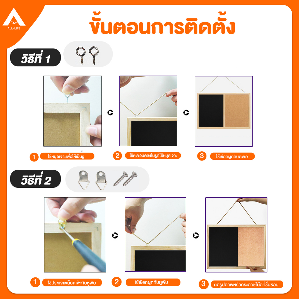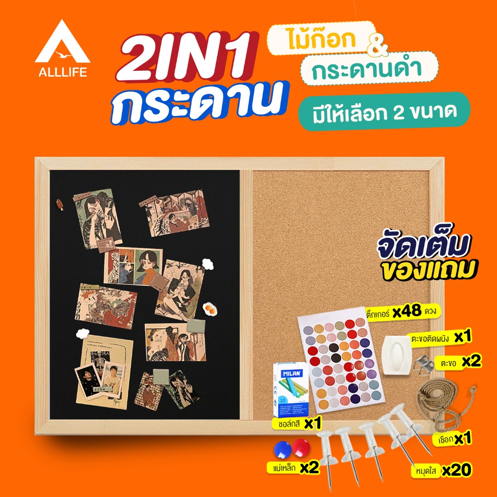 AllLife กระดาน 2IN1 ไม้ก๊อก&กระดานดำ ขอบไม้ Cork Board Blackboad