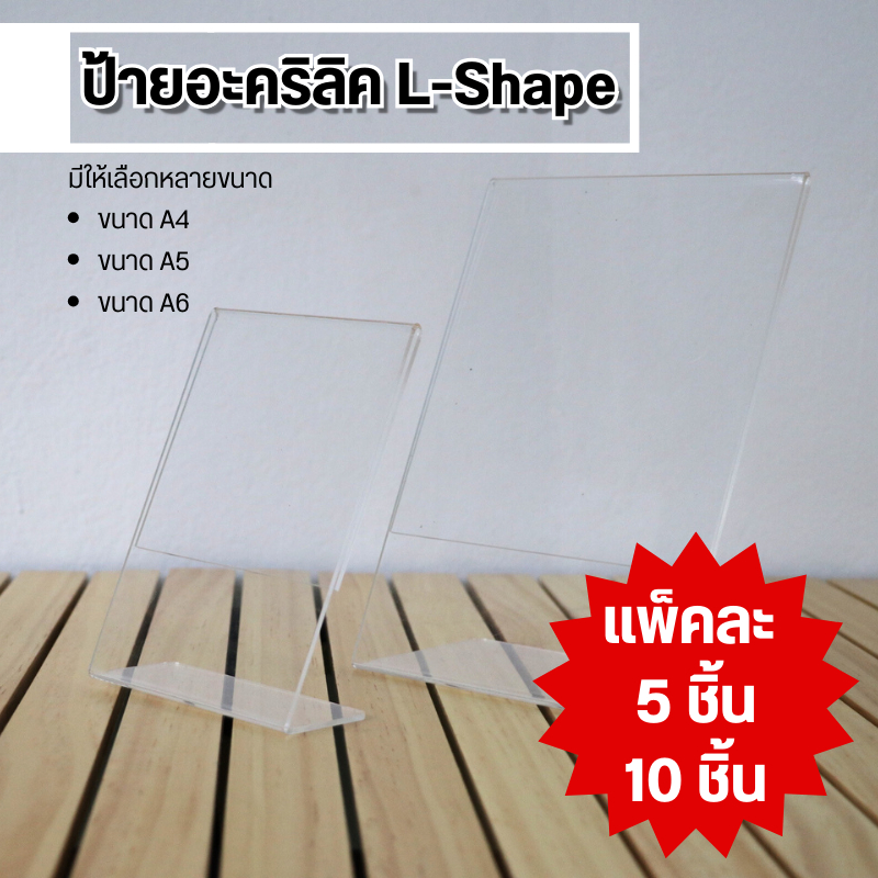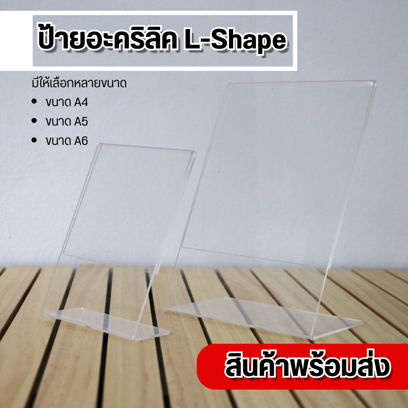 (ซื้อ 5 ชิ้นถูกลง) ป้ายเมนู ป้ายสอด ป้ายตั้งโต๊ะอะคริลิค ขนาด A6(10.8×15 cm.) 1 หน้า ป้าย L-Shape สินค้าพร้อมส่ง