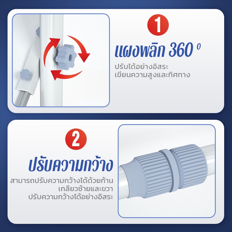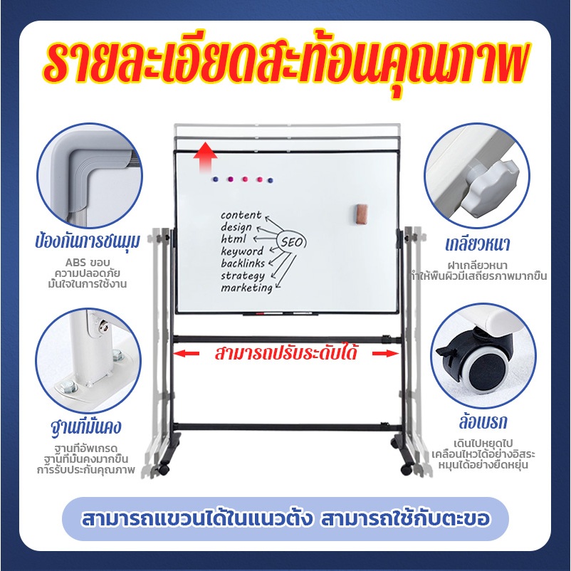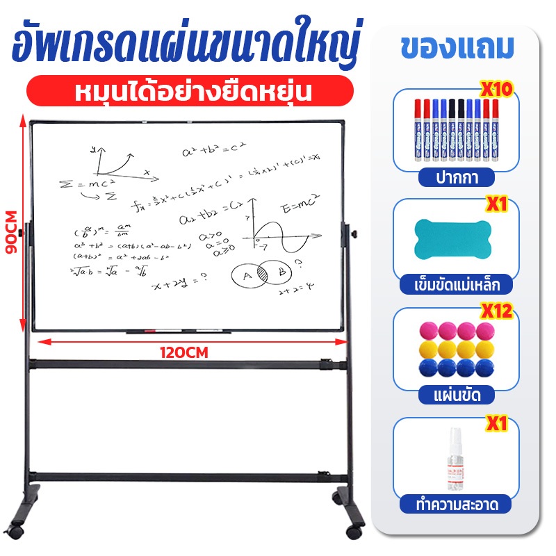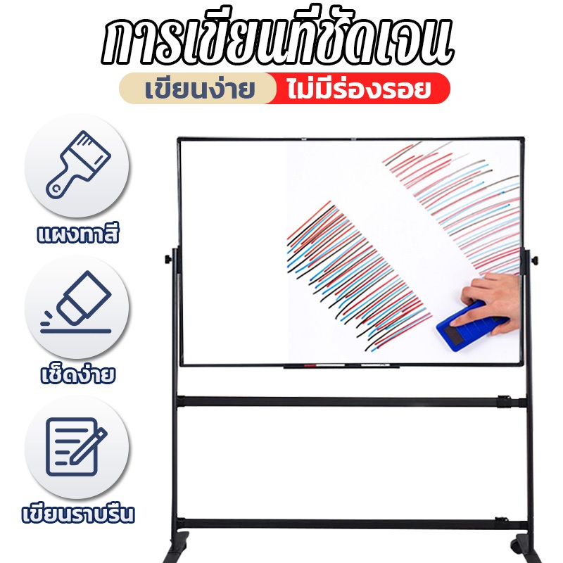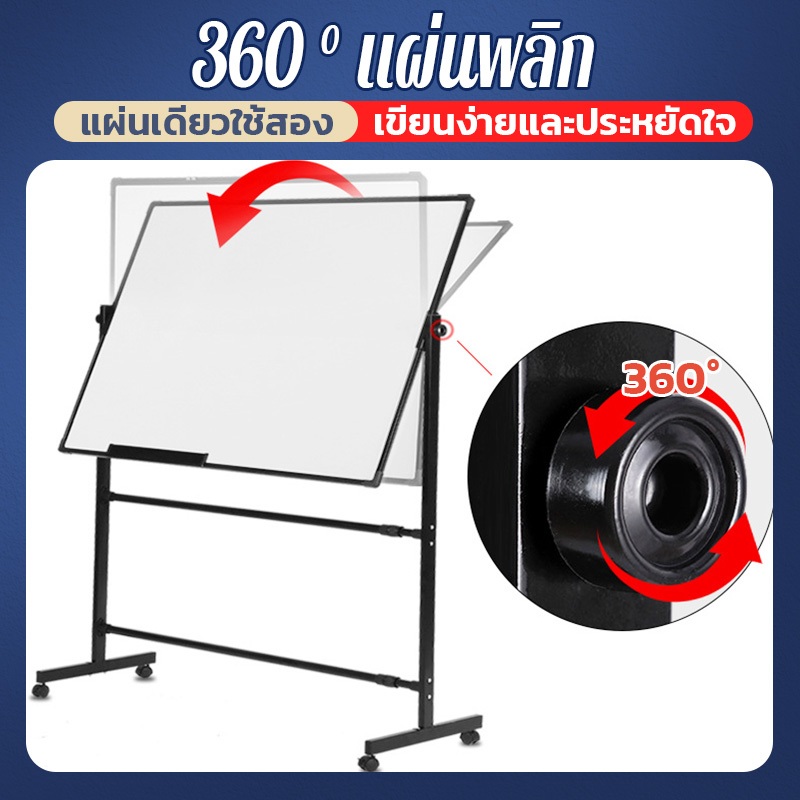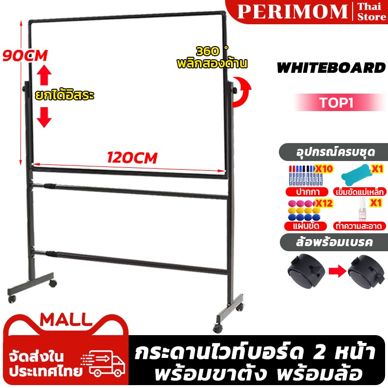 PERIMOM 90*120CM ไวท์บอร์ด กระดาน whiteboard บอร์ด กระดานไวท์บอร์ด 2 หน้า แผงสามารถหมุนได้ 360° ปรับความสูงได้