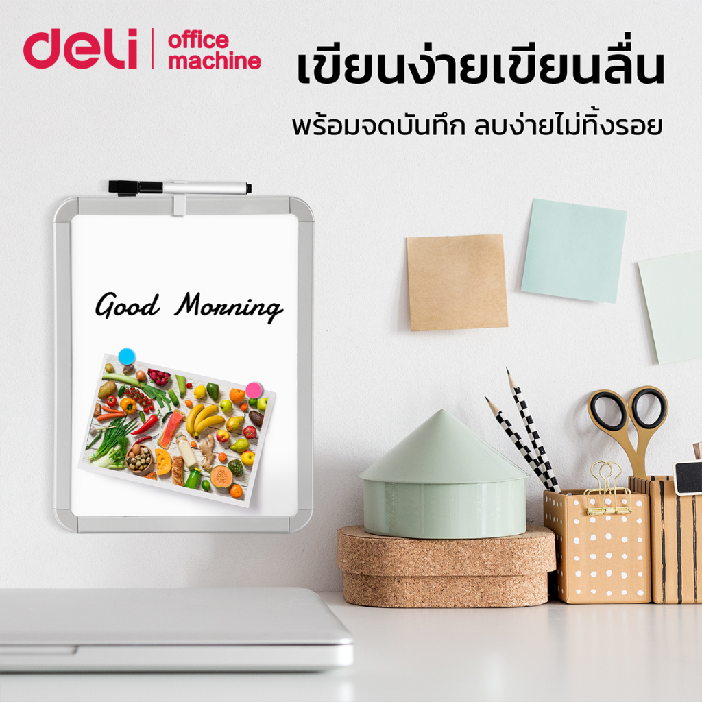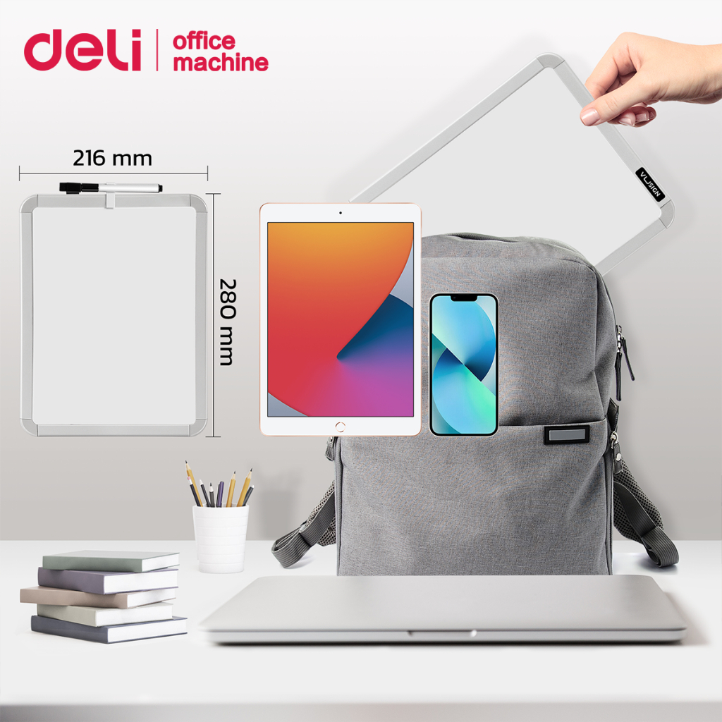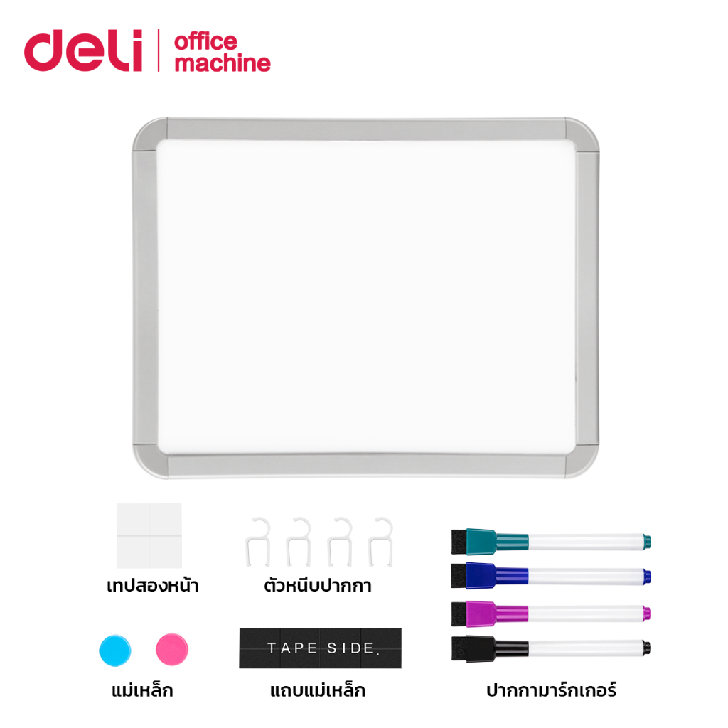 Deli กระดานไวท์บอร์ด ไวท์บอร์ดแม่เหล็ก ขนาด 279×216mm ของแถมเยอะ ติดผนัง ตู้เย็นได้ Whiteboard