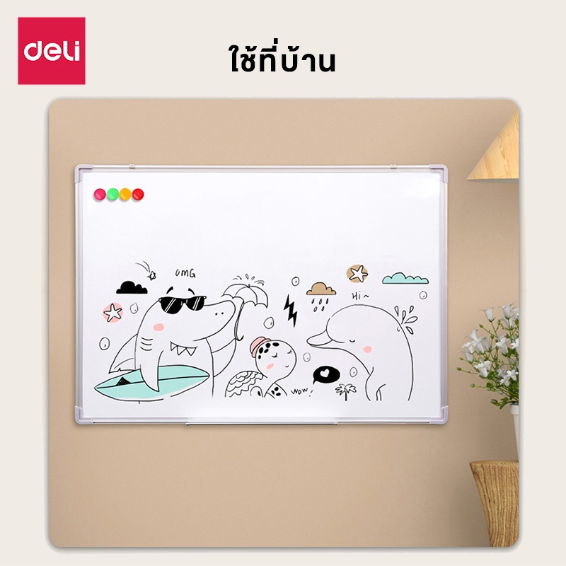 Deli กระดานไวท์บอร์ด ไวท์บอร์ด กระดานเขียนลบได้ มีตะขอแขวน ติดแม่เหล็กได้ อุปกรณ์สำนักงาน Whiteboard