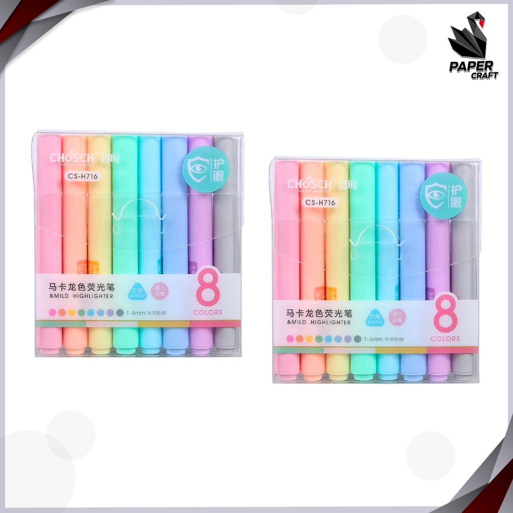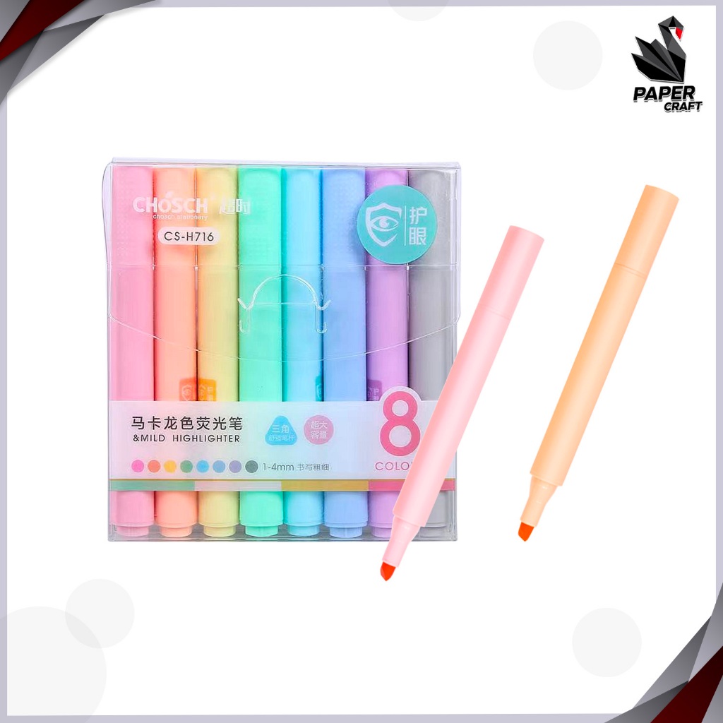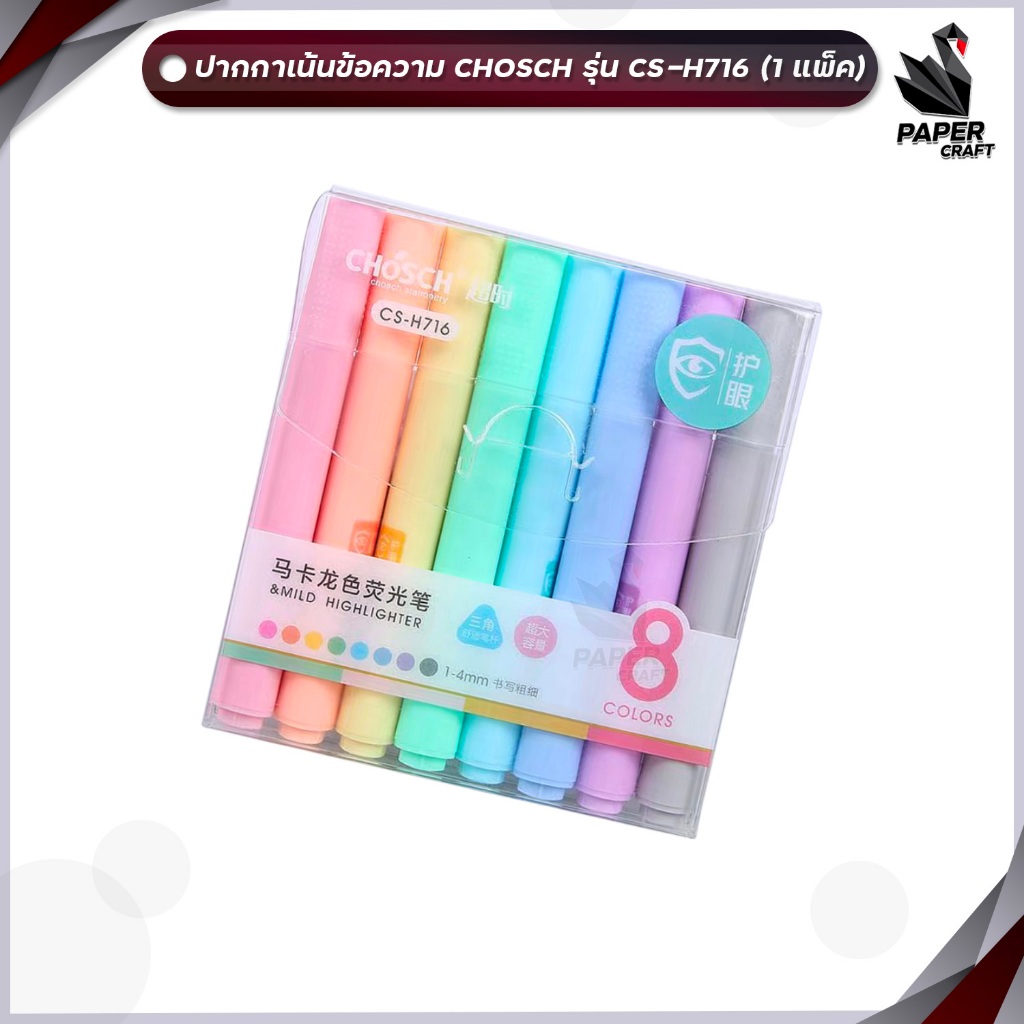Chosch ชุดปากกาไฮไลท์ 8 สี 8 ด้าม รุ่น CS-H716 ปากกาเน้นข้อความ สีพาสเทล ( จำนวน 1 แพ็ค )