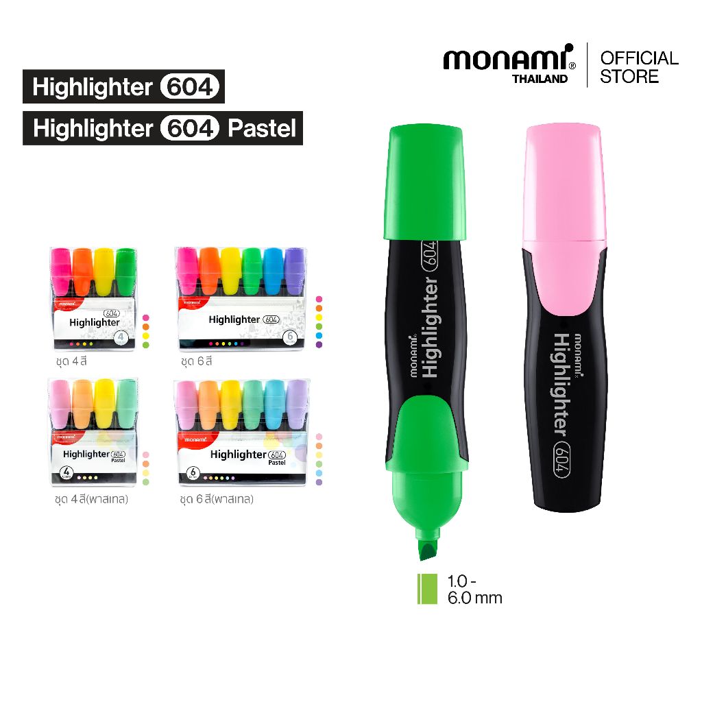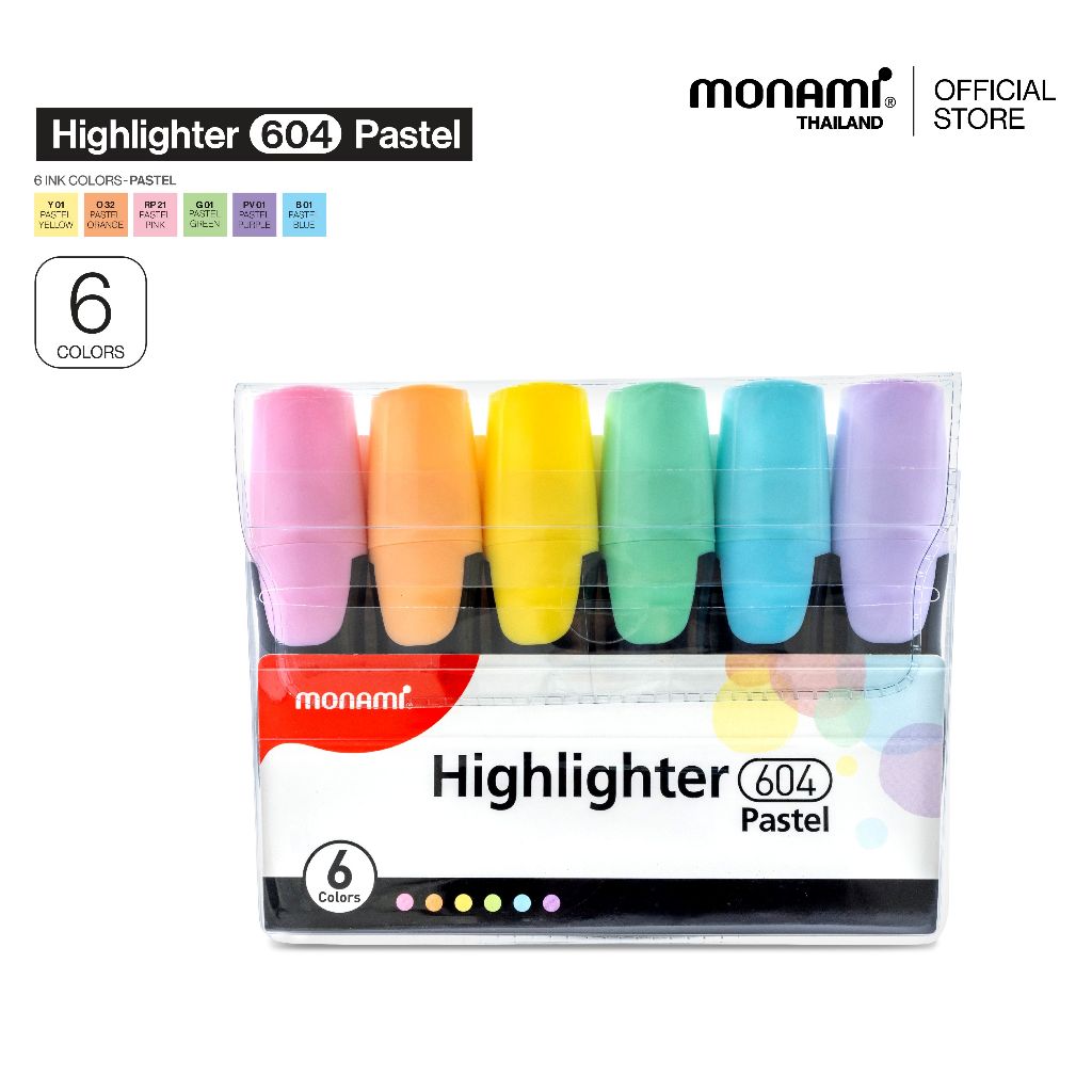 Bantex ปากกาไฮไลท์ สีนีออน แพ็ค 6 แท่ง พาสเทล ปากกา ปากกาเน้นข้อความ ปากกาเน้นข้อความสี เครื่องเขียน Highlighter