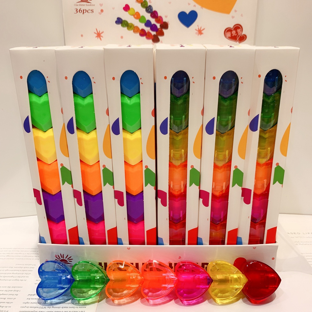 ปากกาเรืองแสง รูปหัวใจน่ารัก เครื่องเขียน สําหรับทําเครื่องหมายกราฟฟิติ หกสี