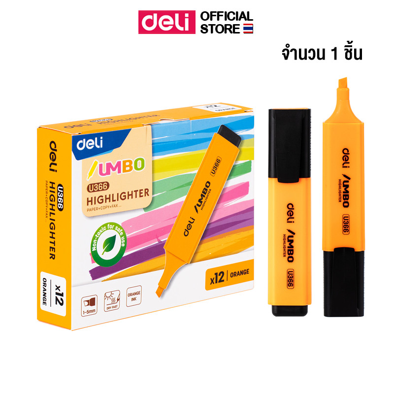 ปากกาไฮไลท์ สีส้ม Deli (แพ็ค1แท่ง) Highlighter หัวตัด 1-5 mm ปากกาเน้นข้อความ เครื่องเขียน ไฮไลท์