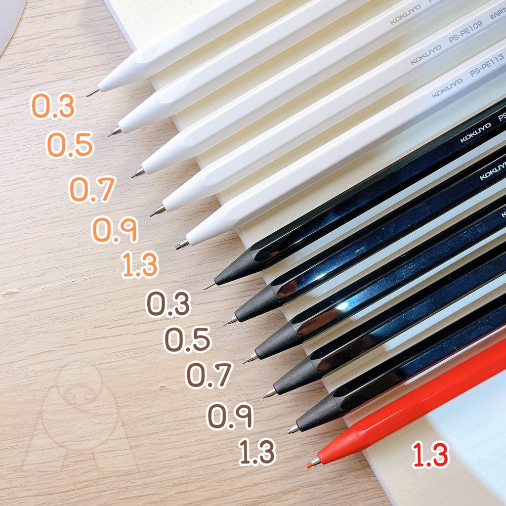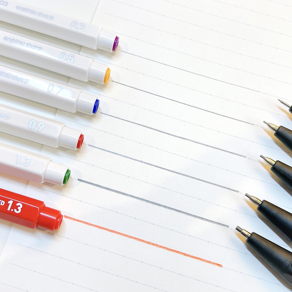Kokuyo Enpitsu Shap ดินสอกดนำเข้าจากญี่ปุ่น มีให้เลือกถึง 5 ขนาด คือ ขนาด 0.3,0.5,0.7,0.9,1.3 มม.