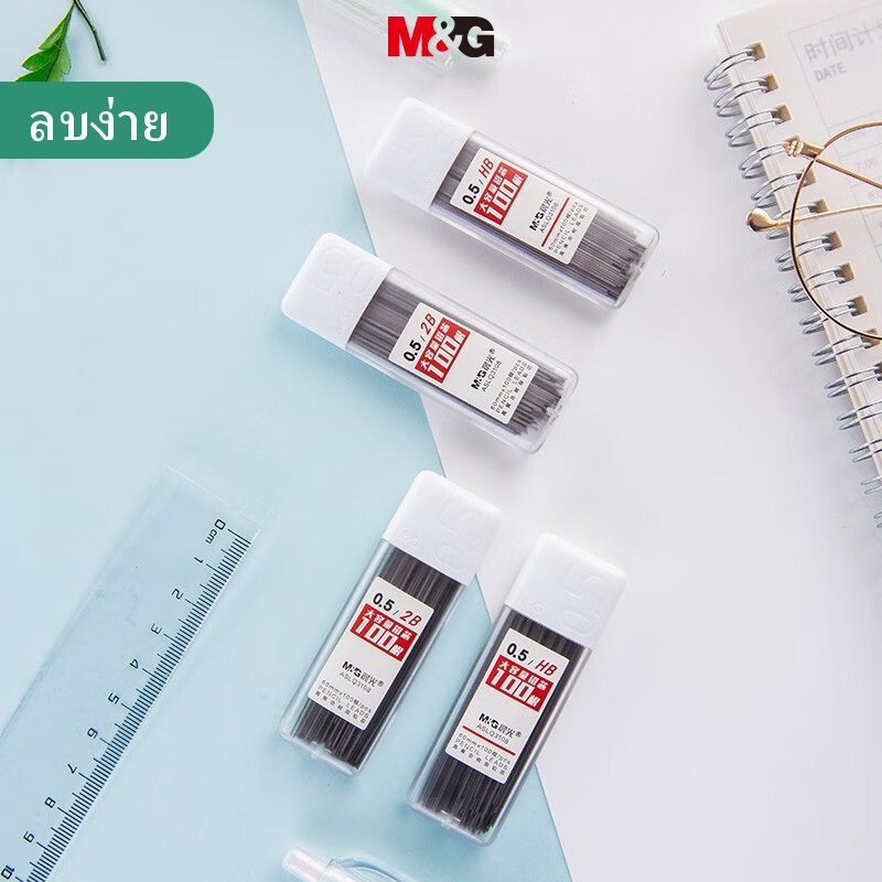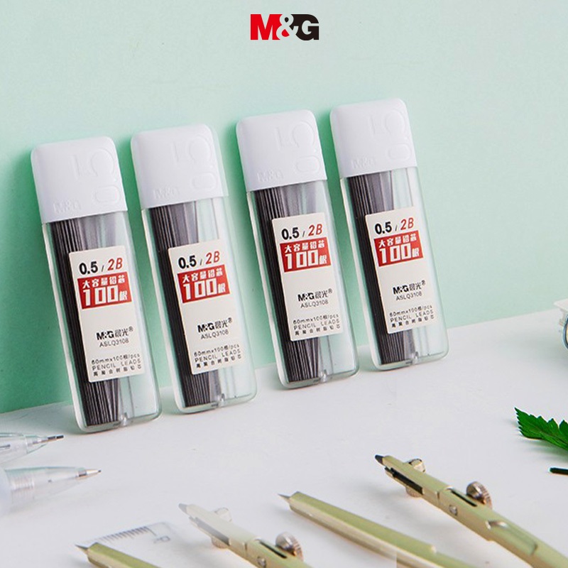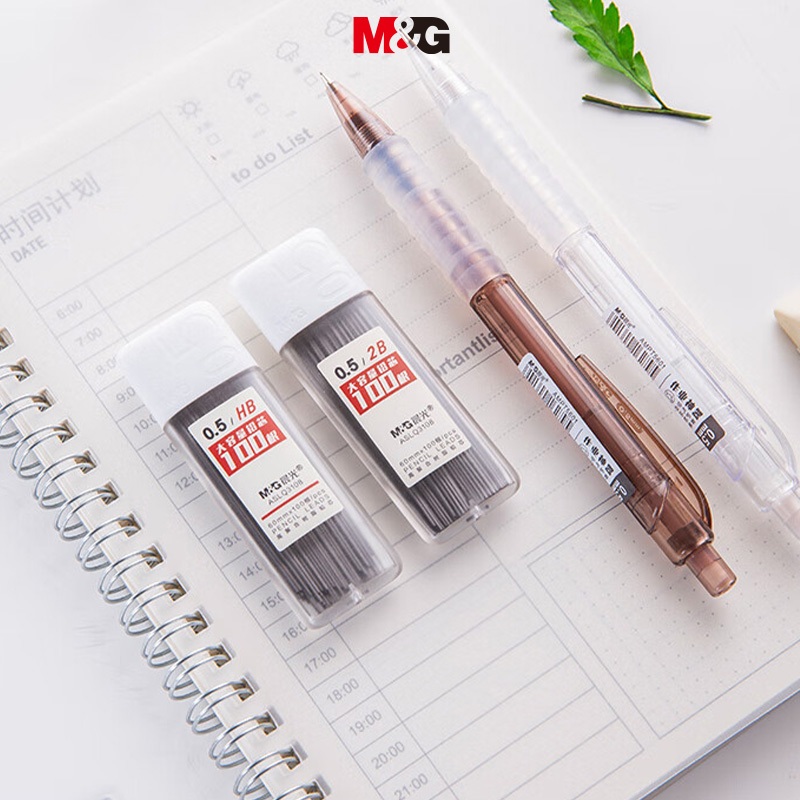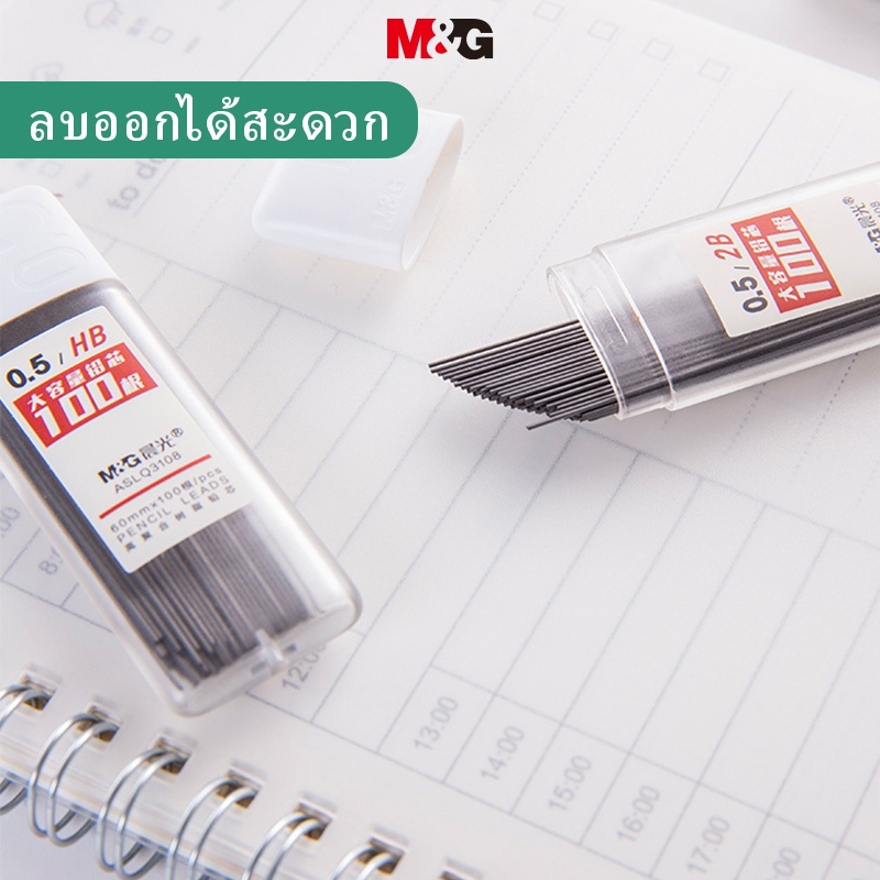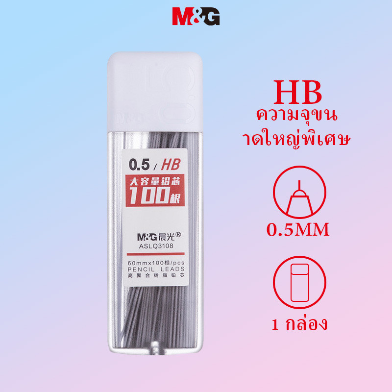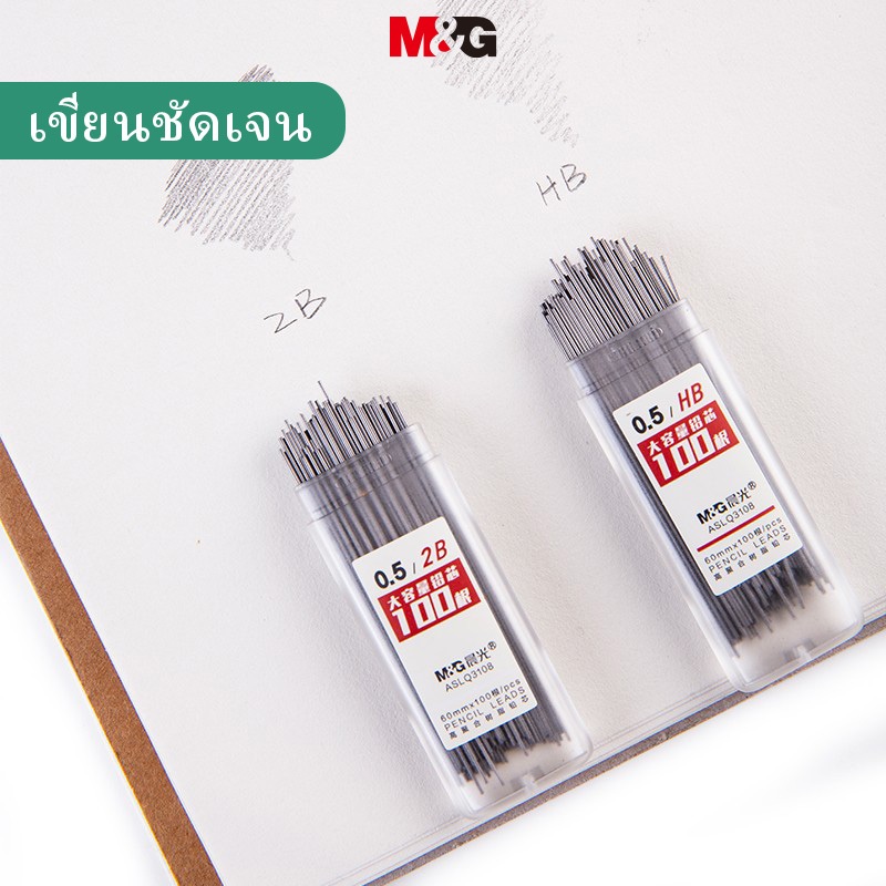 M&g ไส้ดินสอ เรซิน 2B/HB ความจุขนาดใหญ่ 100 ชิ้น ต่อกล่อง