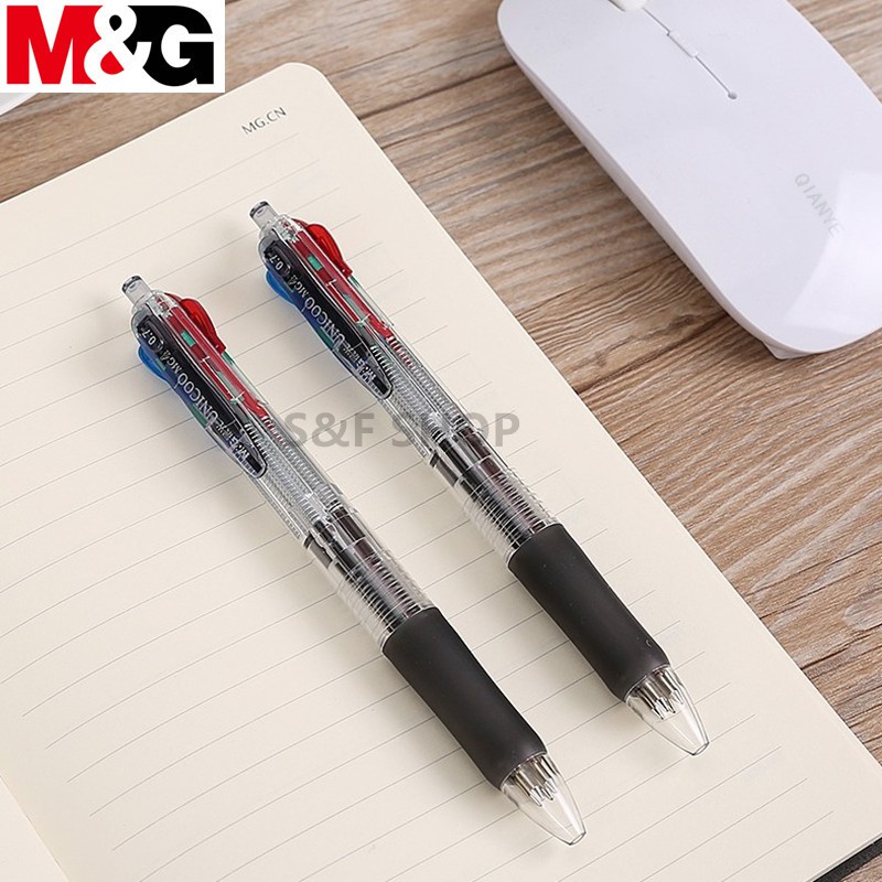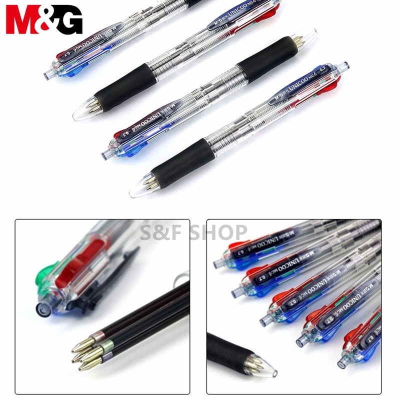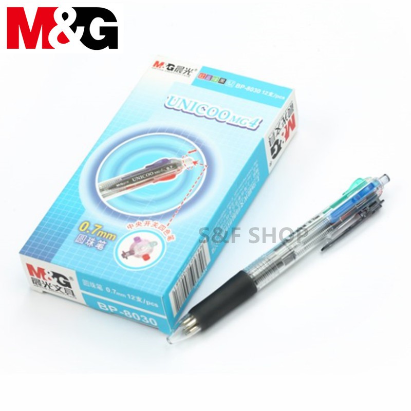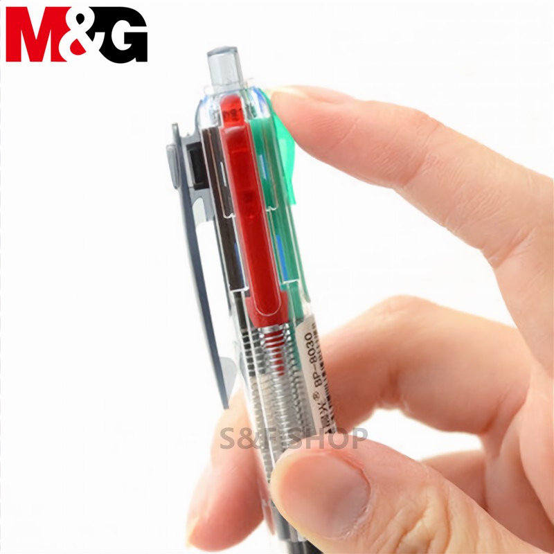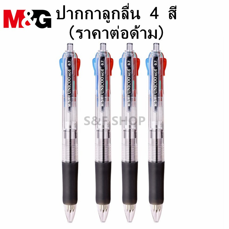 พร้อมส่ง ปากกาลูกลื่นแบบกด M&G BP-8030 ปลอกยาง หมึก 4 สีในแท่งเดียว ขนาดเส้น 0.7mm (ราคาต่อด้าม) #M&G #School #office