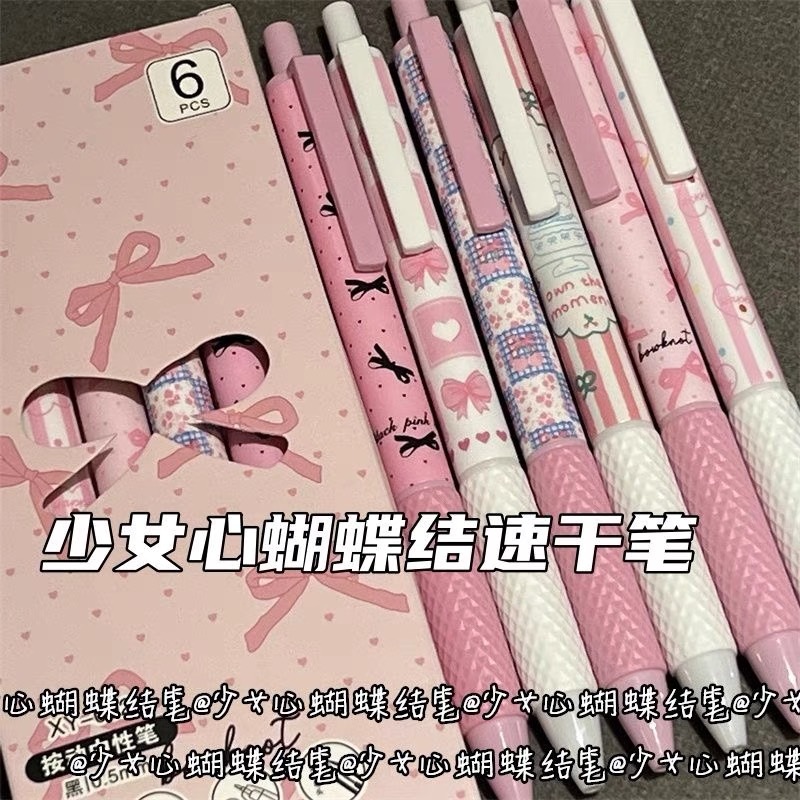 ผีเสื้อสีชมพูกดปากกาสีดําแห้งเร็วแปรงปากกาปากกาเจลปากกาสร้างสรรค์เครื่องเขียนของขวัญรางวัลอุปกรณ์นักเรียนอุปกรณ์สํานักงาน