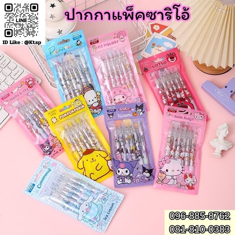 พร้อมส่งในไทย ปากกาแพ็คซาริโอ้ ปากกาหัวเจลแบบซองแพ็ค เขียนง่าย ลายน่ารัก ของใช้บนโต๊ะ เครื่องเขียน ปากกา