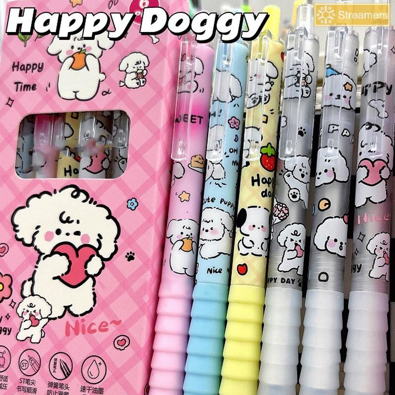 {สตรีม} 6ชิ้น/กล่องเจลปากกาแห้งเร็วหมึกสีดําเขียนได้อย่างราบรื่นอุปกรณ์การเรียนอุปกรณ์สํานักงานความงามเครื่องเขียน น่ารัก ปากกาใ