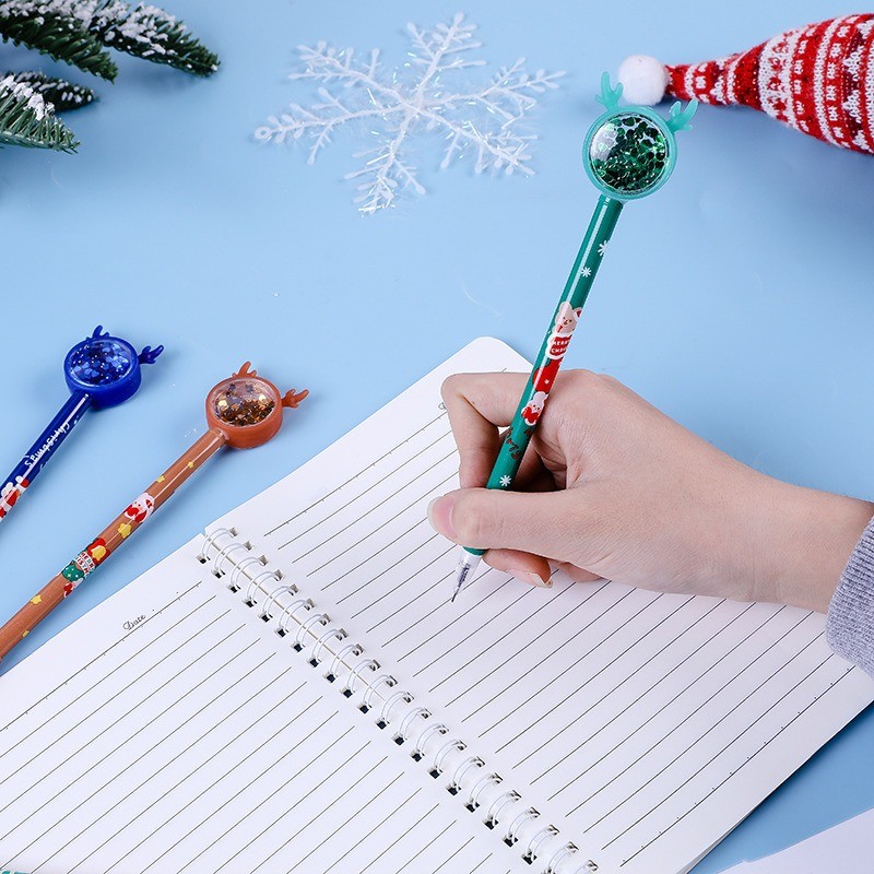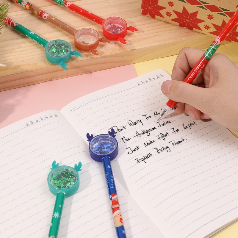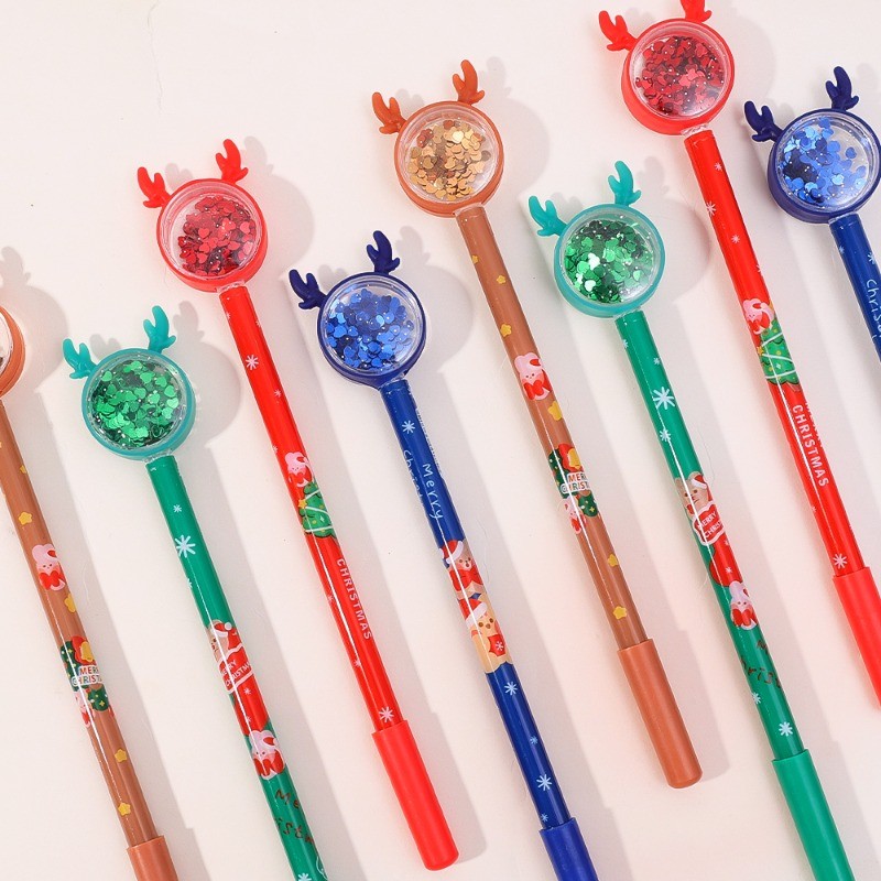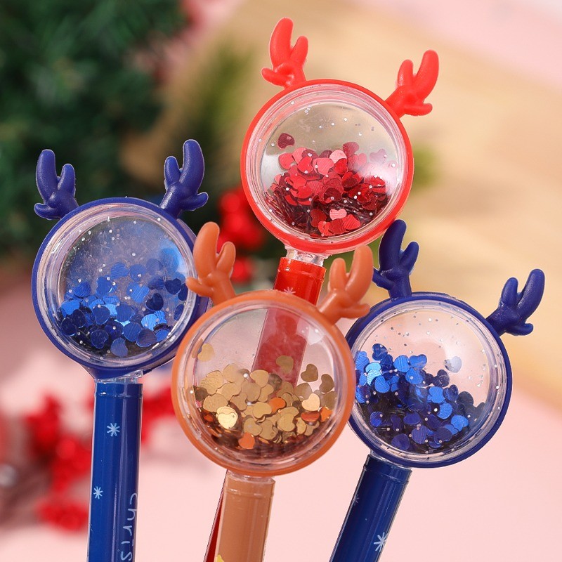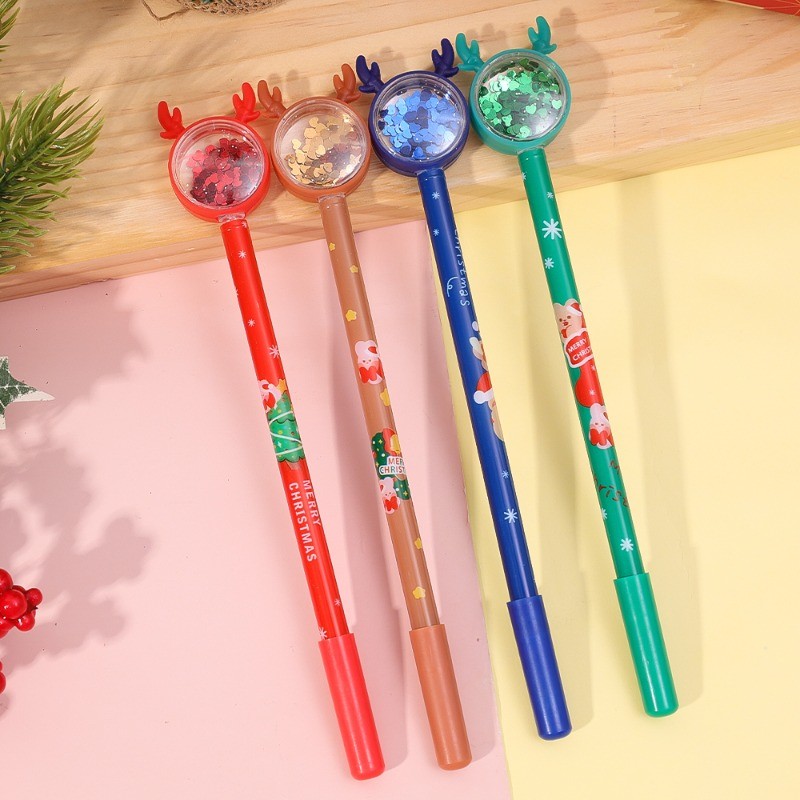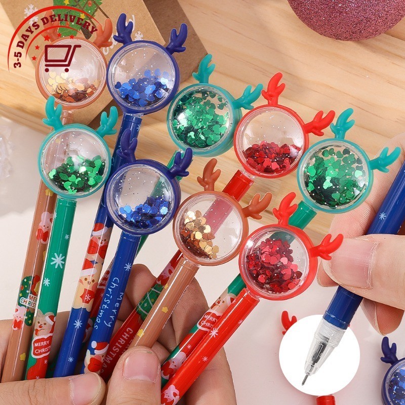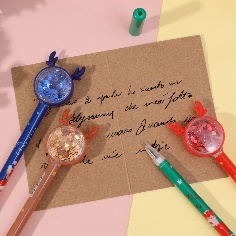 [จัดส่ง 3-5 วัน]ปากกาเจลกลิตเตอร์กวางเรนเดียร์คริสต์มาส 2/4 ชิ้น, หมึกสีดํารีฟิลพร้อมการออกแบบเลื่อมสําหรับของขวัญสํานักงานโรง