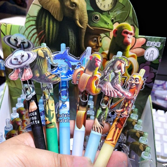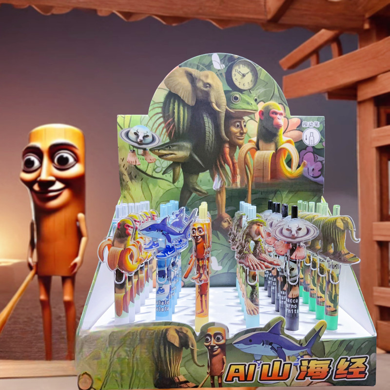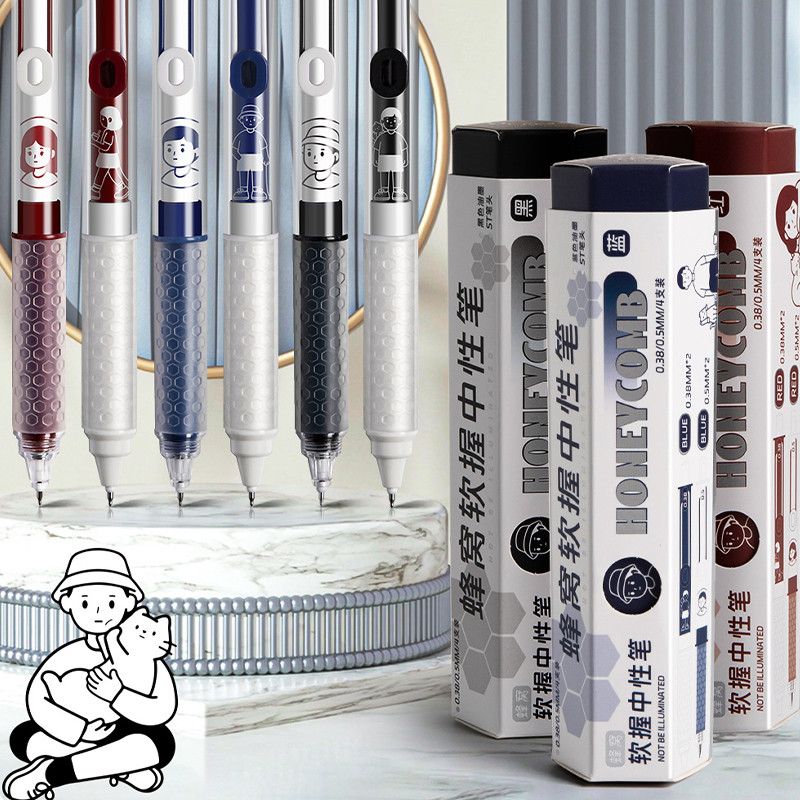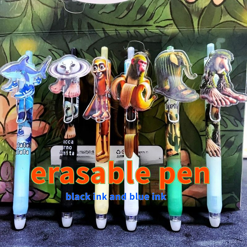 6 นักเรียนปากกาลบได้, AI Shanhai Jing Boy การ์ตูนไม้ Stick Man กดปากกาเจลสีดํา