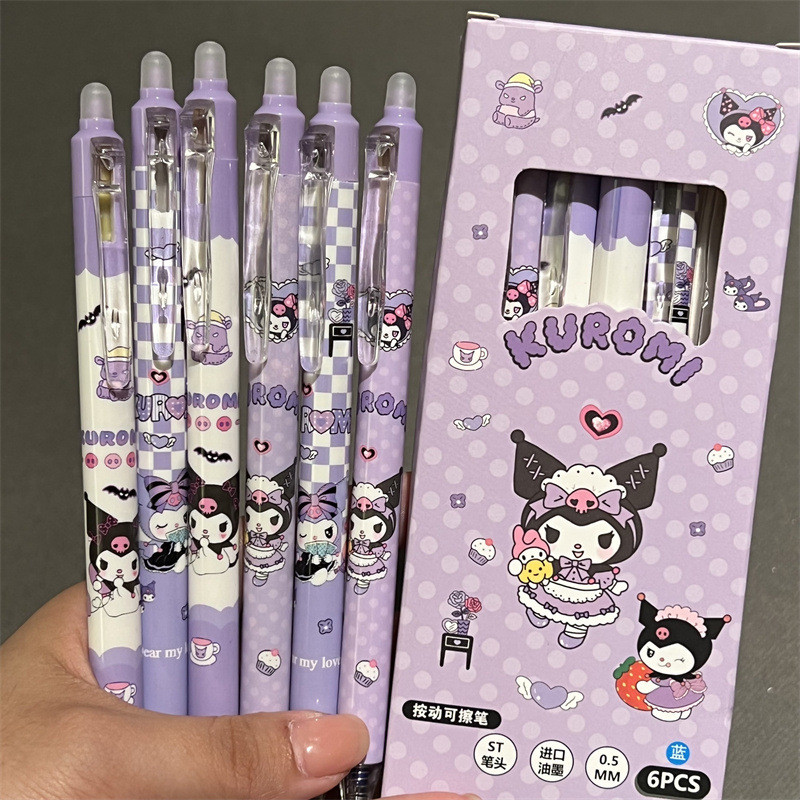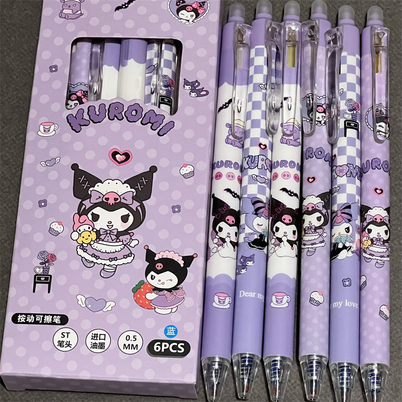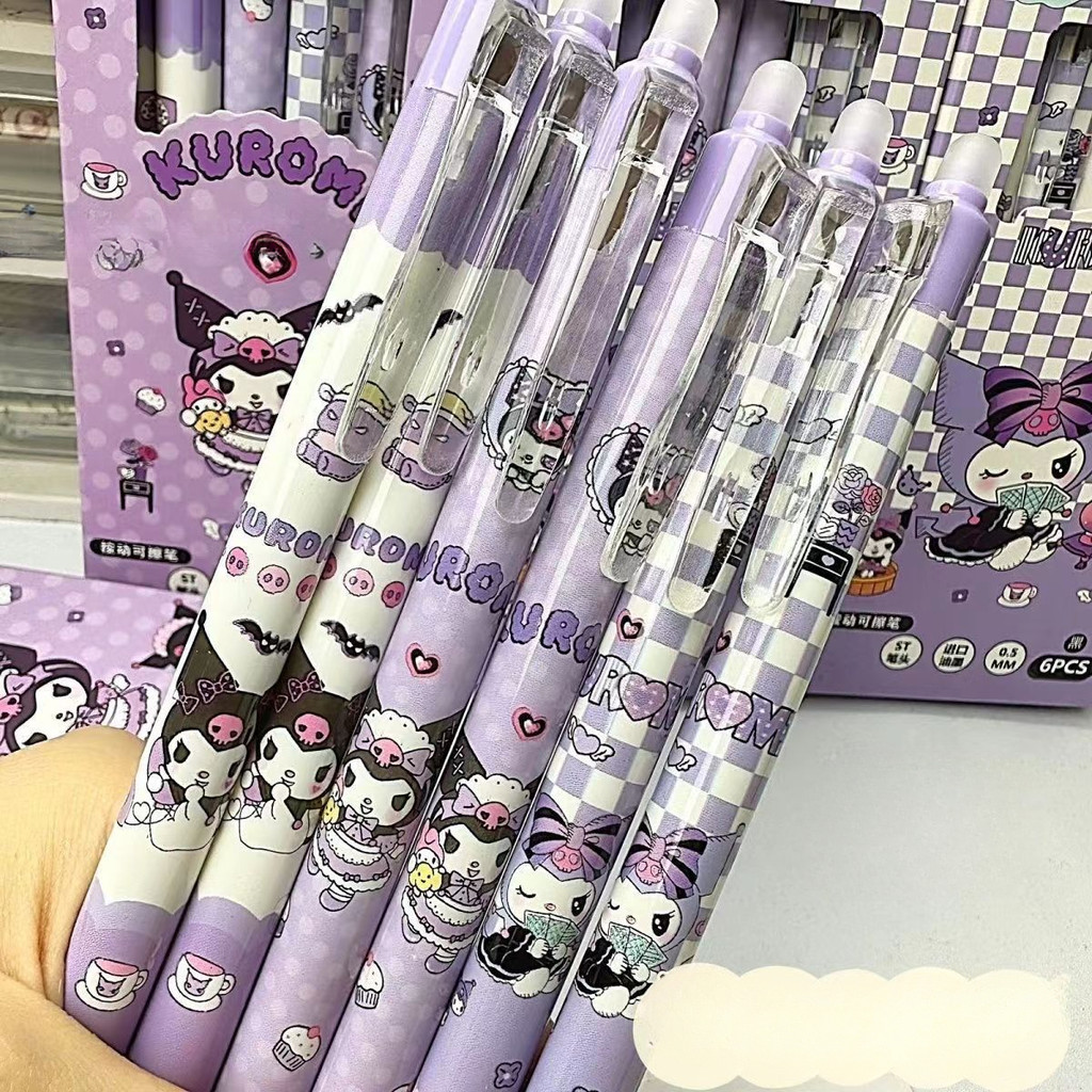 6 ชิ้น/0.5 มม.น่ารัก Kuromi อะนิเมะกด Erasable ปากกา Sanrio Kawaii Neutral ปากกาการ์ตูนน่ารักนักเรียนเครื่องเขียนโรงเรียนของขวัญเด็ก