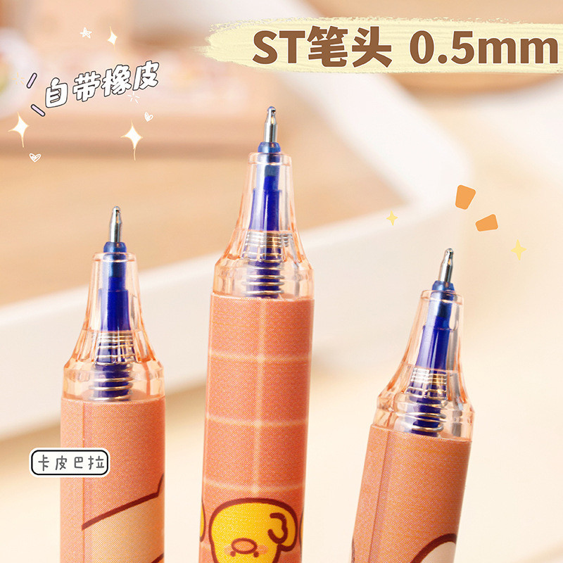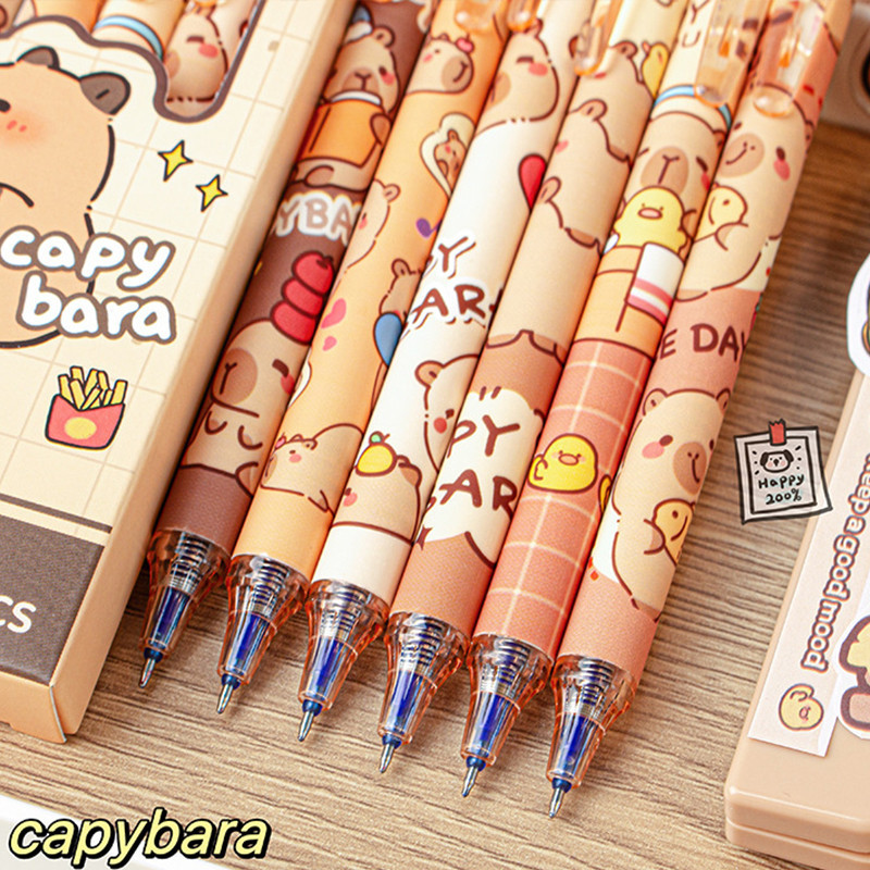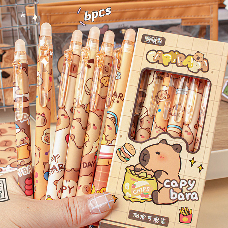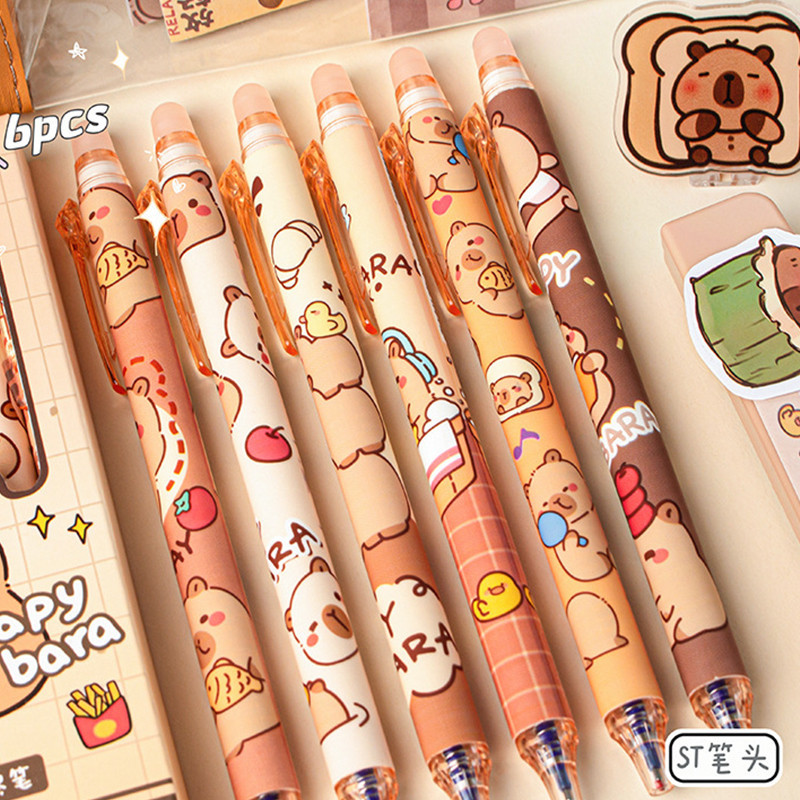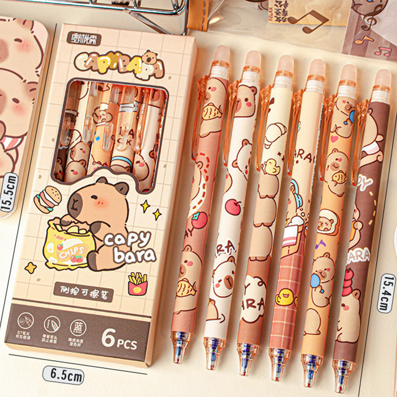 6ชิ้นการ์ตูน คาปิบาระ ลบได้ ปากกาเจลชุดนักเรียนความจุขนาดใหญ่ ลบได้ ปากกาหมึกสีฟ้า0.5มิลลิเมตรเซนต์ หัวปากกาหมึกแห้งเร็ว