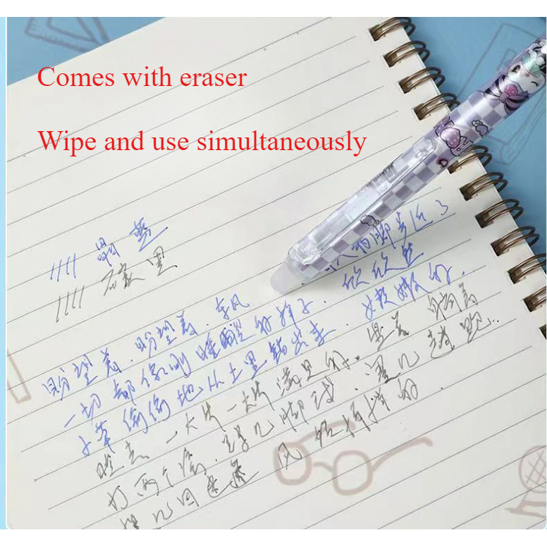 6ชิ้น คุโรมิ ลบได้ นักเรียนน่ารักปากกา0.5มิลลิเมตรสีฟ้าสีดํา
