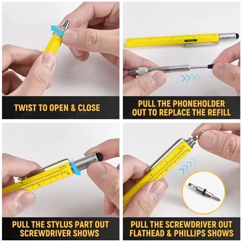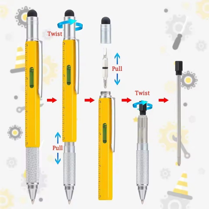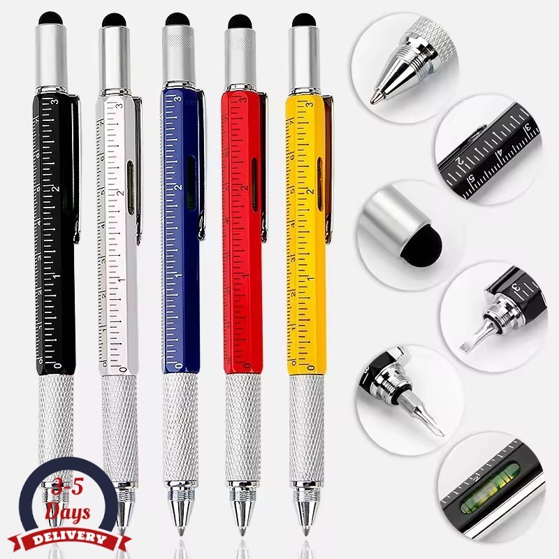 7 in 1 ปากกามัลติฟังก์ชั่นหน้าจอสัมผัส Stylus ปากกา Capacitive พร้อมไขควงไม้บรรทัด Levelgauge รีฟิลปากกาลูกลื่นเครื่องมือ 7 สี