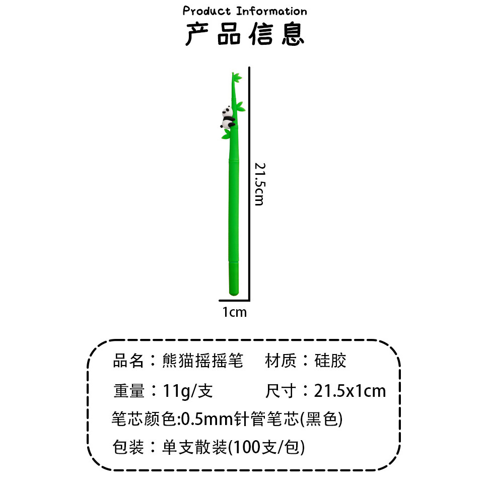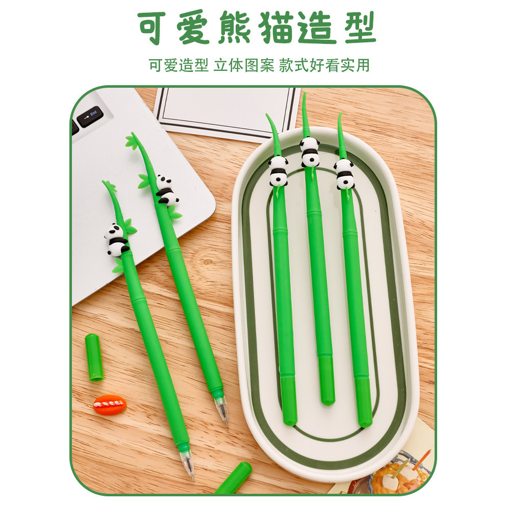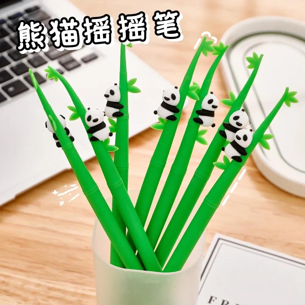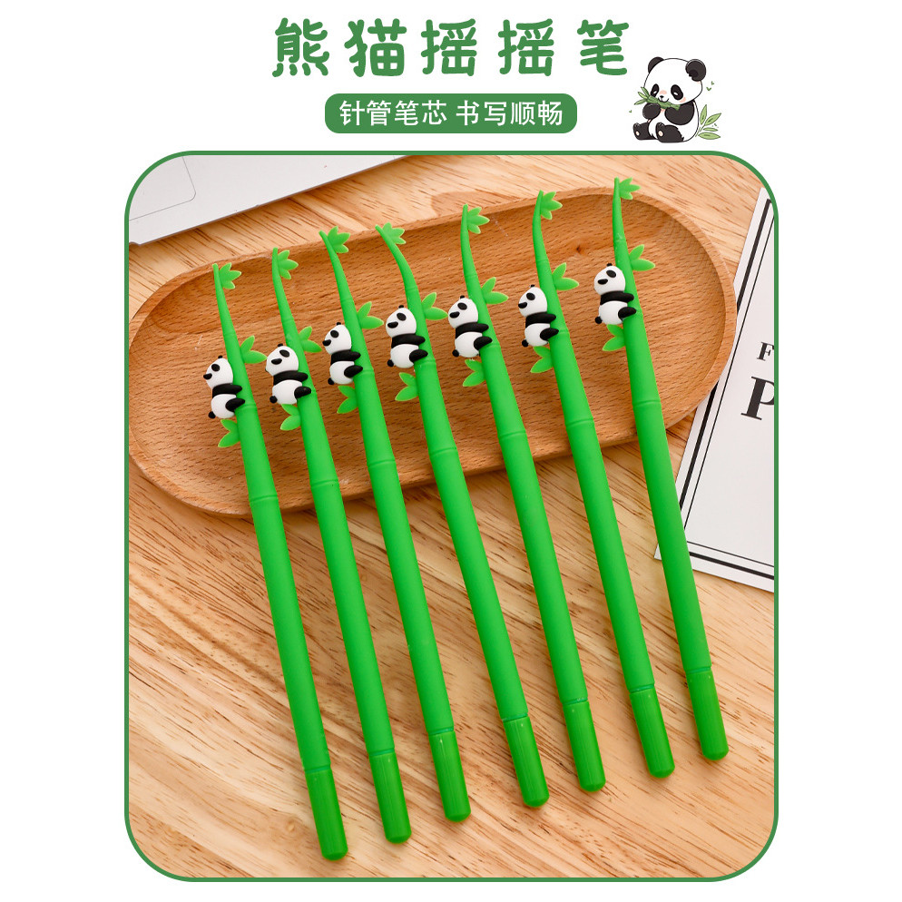 12ชิ้นการ์ตูนไม้ไผ่แพนด้าสั่นปากกาเป็นกลางนักเรียนน่ารักเครื่องเขียนกาวนุ่มเขย่าอุปกรณ์สํานักงาน