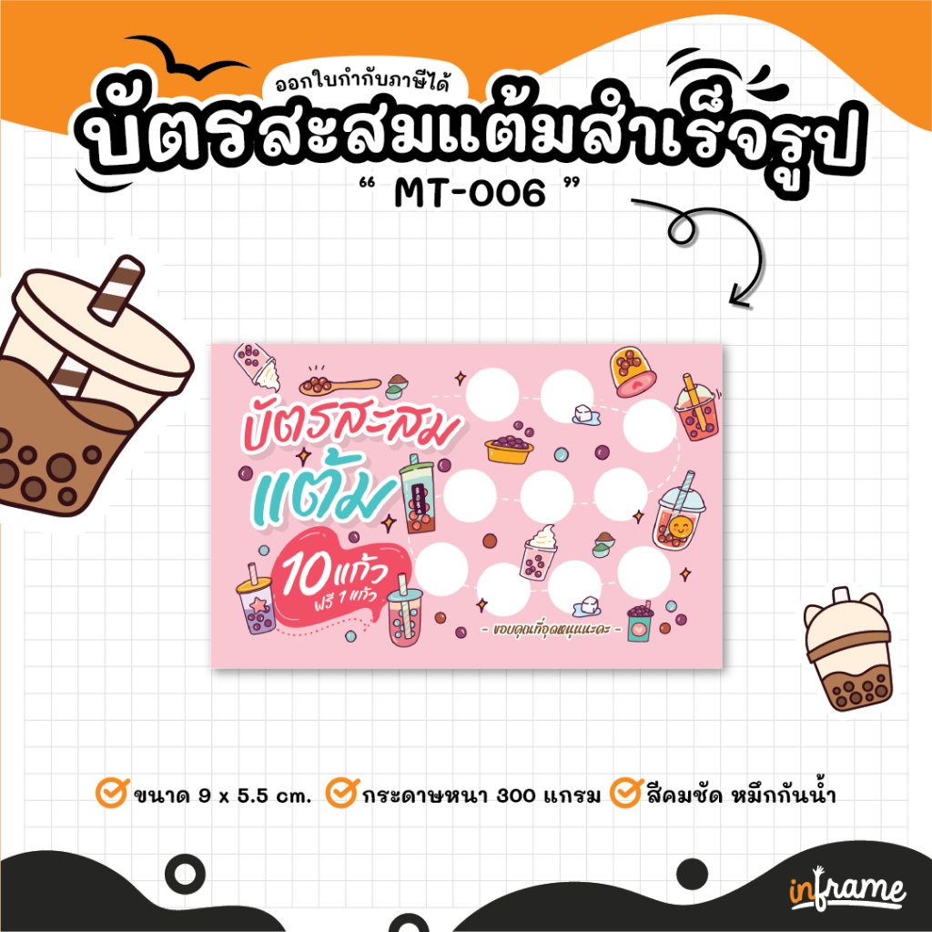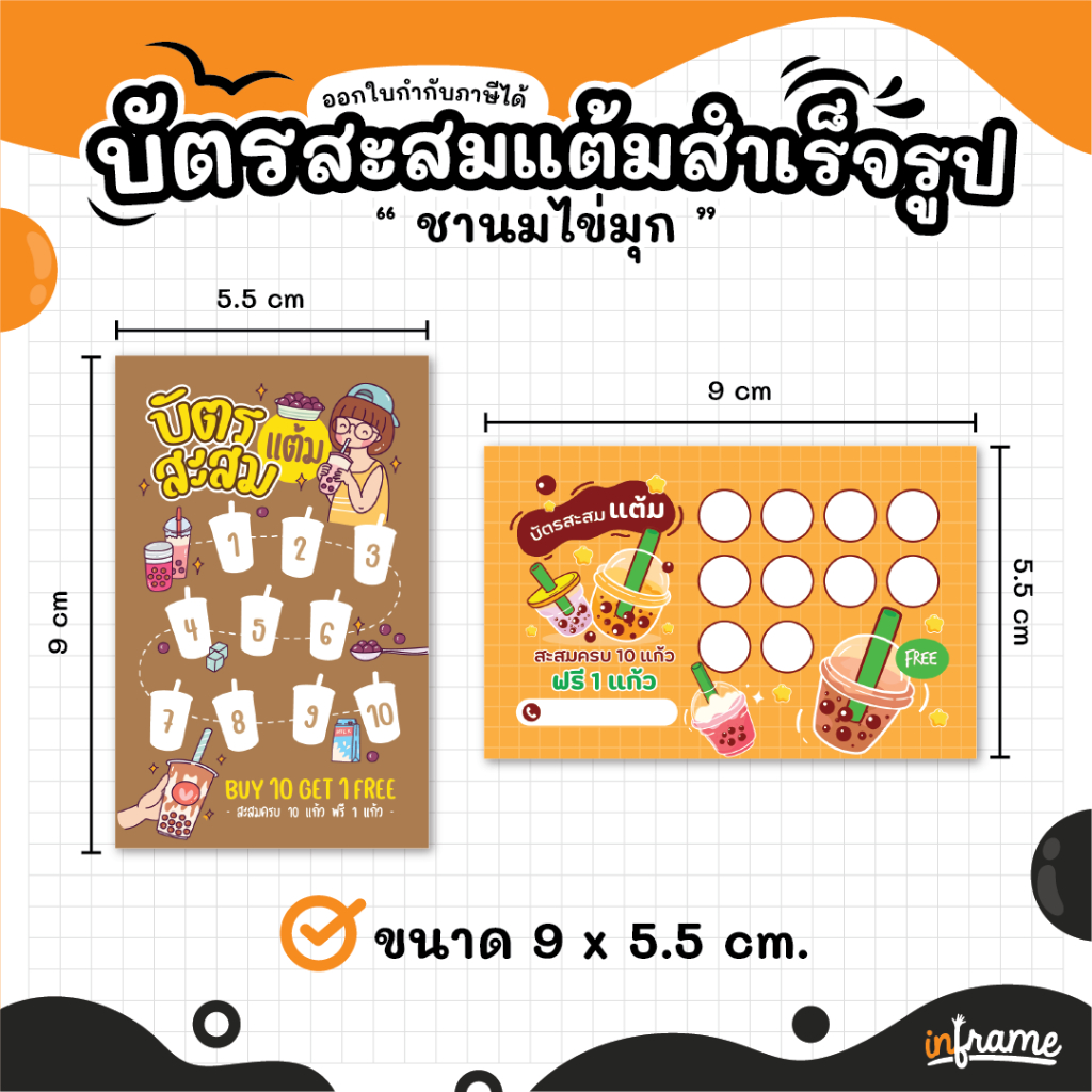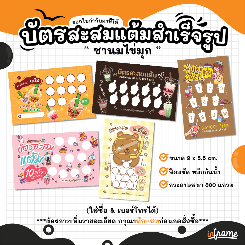 01.PP300-CF01- บัตรสะสมแต้มสำเร็จรูป “ชานมไข่มุก” แบบ 1 หน้า กระดาษหนา หมึกกันน้ำ