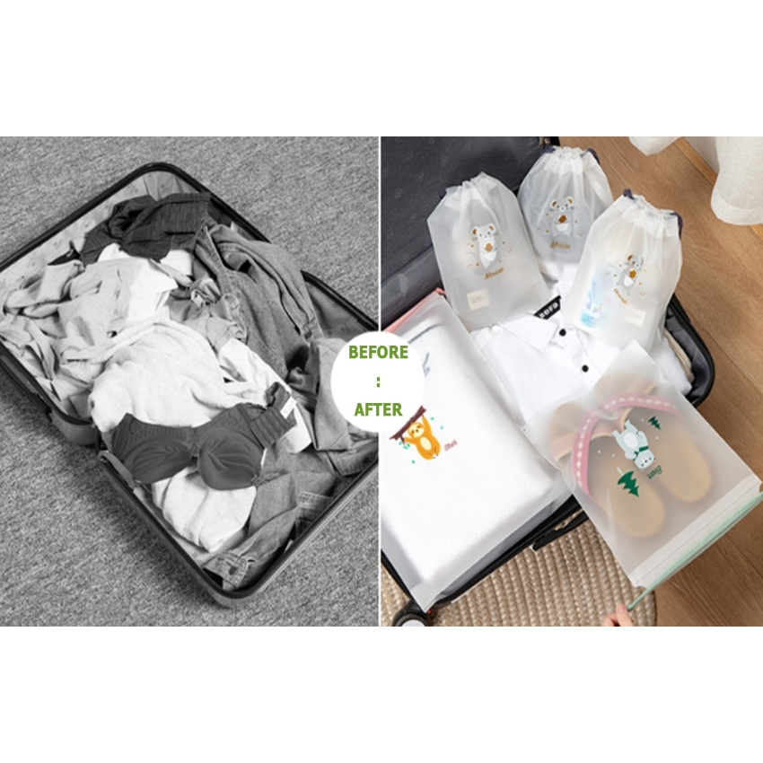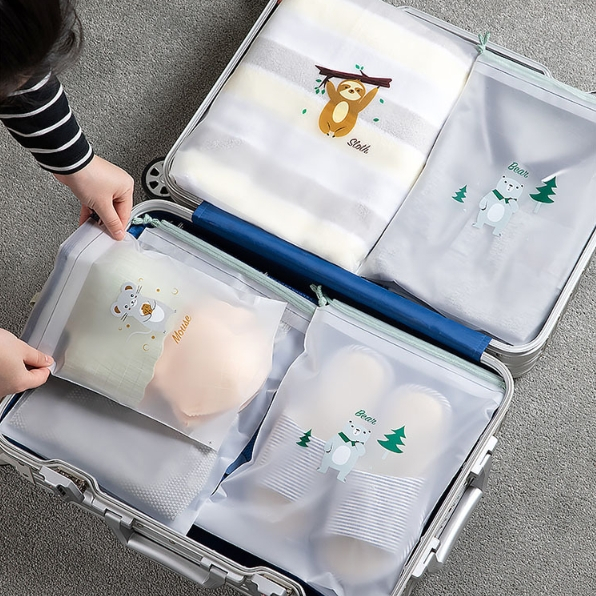 (มี 3 ไซต์) ถุงหูรูดพลาสติกพิมพ์ลาย ถุงจัดระเบียบ ถุงเก็บของ สำหรับจัดระเบียบกระเป่าเดินทาง กันน้ำ กันฝุ่น