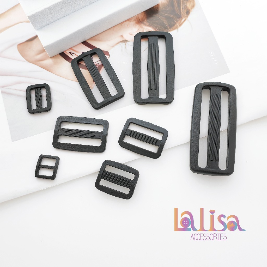 ที่ปรับสายเป้ ตัวเลื่อนสายกระเป๋า ตัวปรับสายกระเป๋า พลาสติกสีดำ Plastic Buckle (D-3-A,XCXB-076)