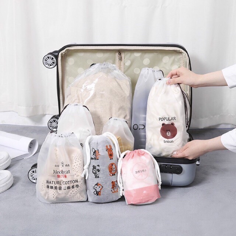 (มี 3 ไซต์) ถุงหูรูดพลาสติกพิมพ์ลาย ถุงจัดระเบียบ ถุงเก็บของ สำหรับจัดระเบียบกระเป่าเดินทาง กันน้ำ กันฝุ่น