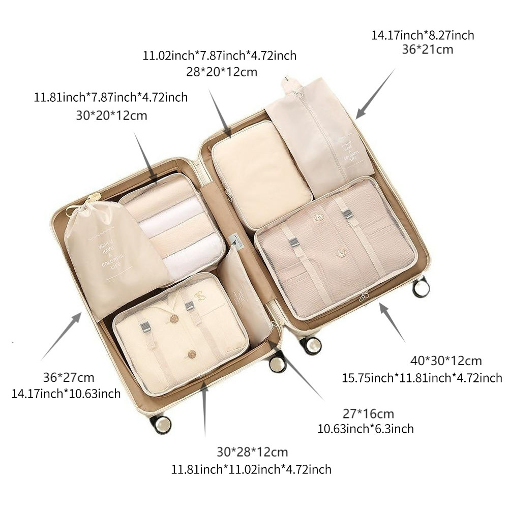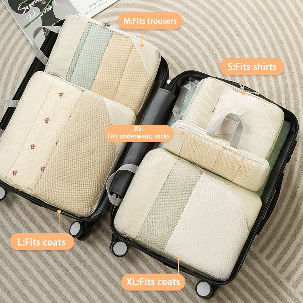 7 ชิ้น ออแกไนเซอร์ กระเป๋าเก็บของ ถุงเก็บซิปหนา กระเป๋าเดินทางชุดบรรจุกรณีการจัดเก็บ ชิ้นกระเป๋าจัดระเบียบใส่เสื้อผ้า