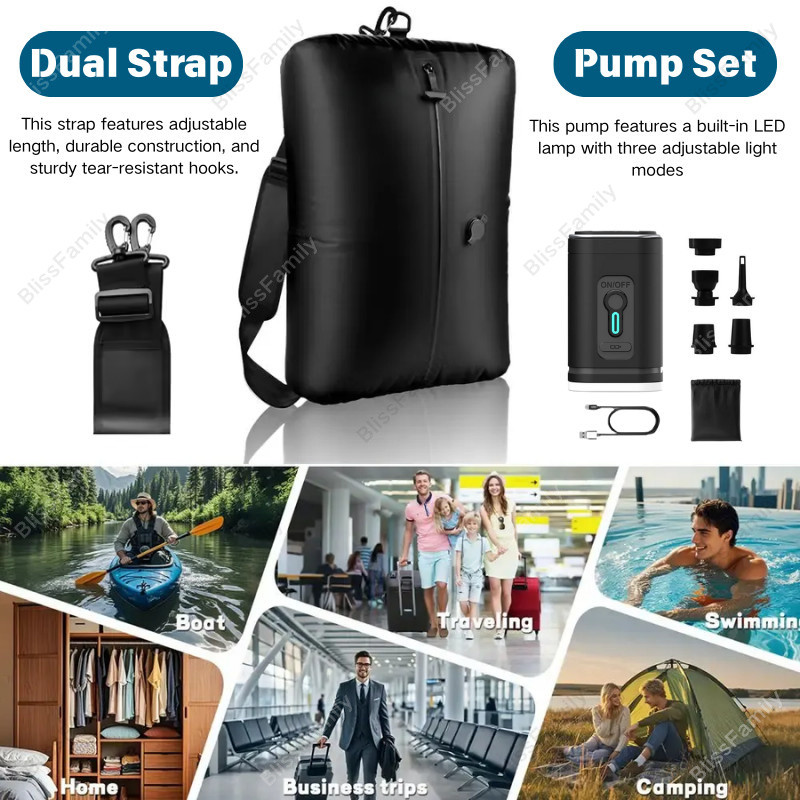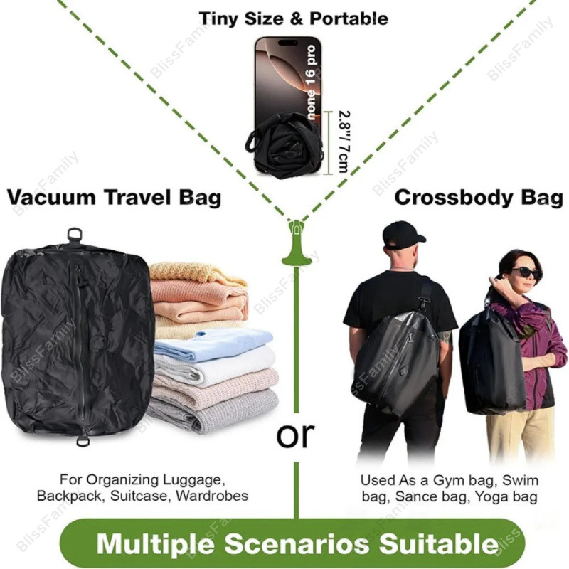 34ล บวก ถุงสูญญากาศเดินทางกันน้ําสําหรับเสื้อผ้า,ทนทานและกันฝุ่นถุงบีบอัดเดินทางพร้อมสายรัด,ถุงเก็บสูญญากาศแบบใช้ซ้ําได้พร้อมปั๊มสูญญากาศไฟฟ้า,ความสุข