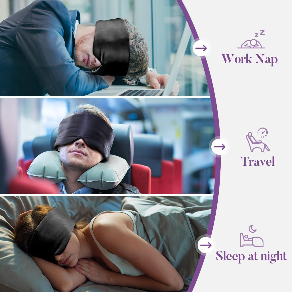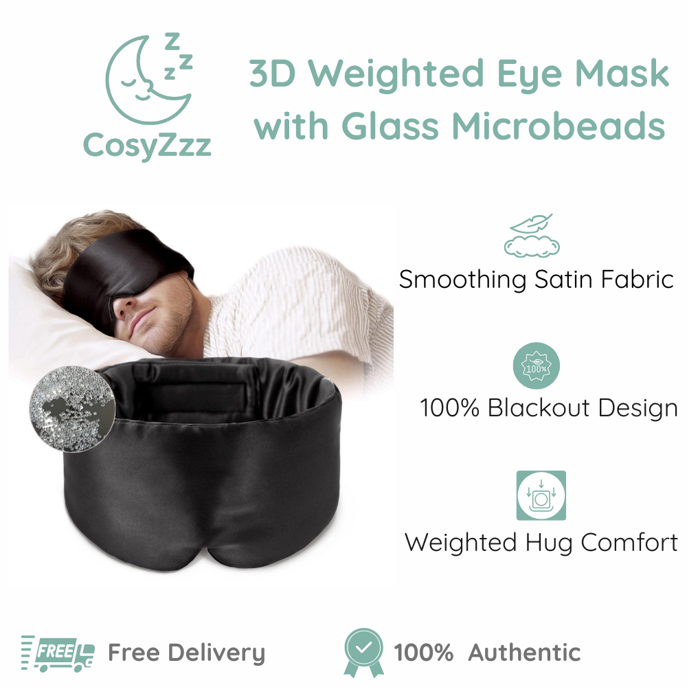 หน้ากากปิดตาน้ําหนัก 3 มิติ | ผ้าปิดตาสําหรับตาแห้ง, หมอนตาถ่วงน้ําหนักด้วยความร้อนและได้อย่างอิสระพร้อมลูกปัดซิลิกา & สายรัดปรับได้, ฝาครอบตาซาตินระบายอากาศนุ่มสําหรับนอ